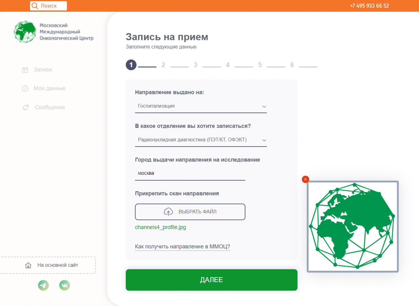 • Частичная разгрузка администраторов клиники по первичному приему документов.