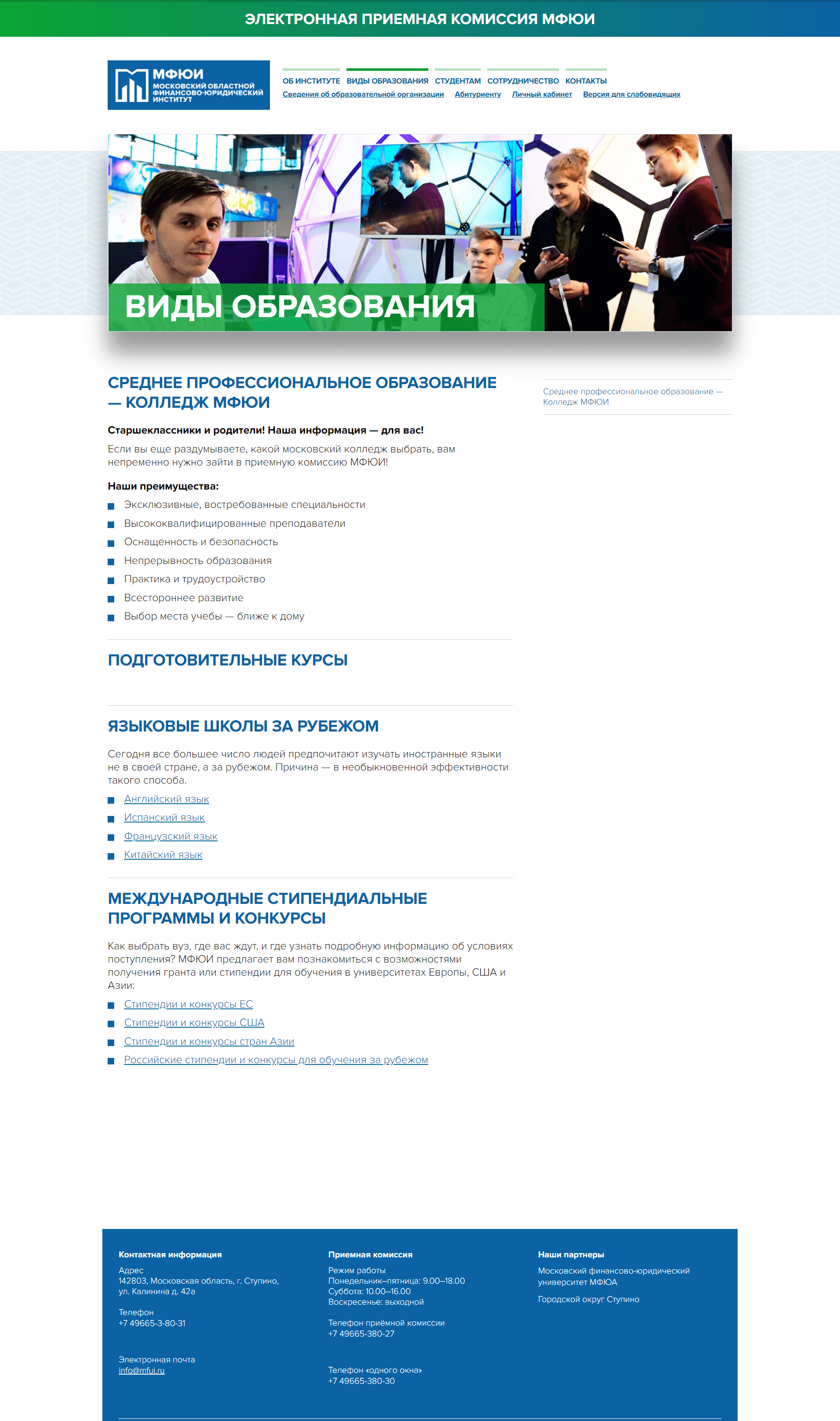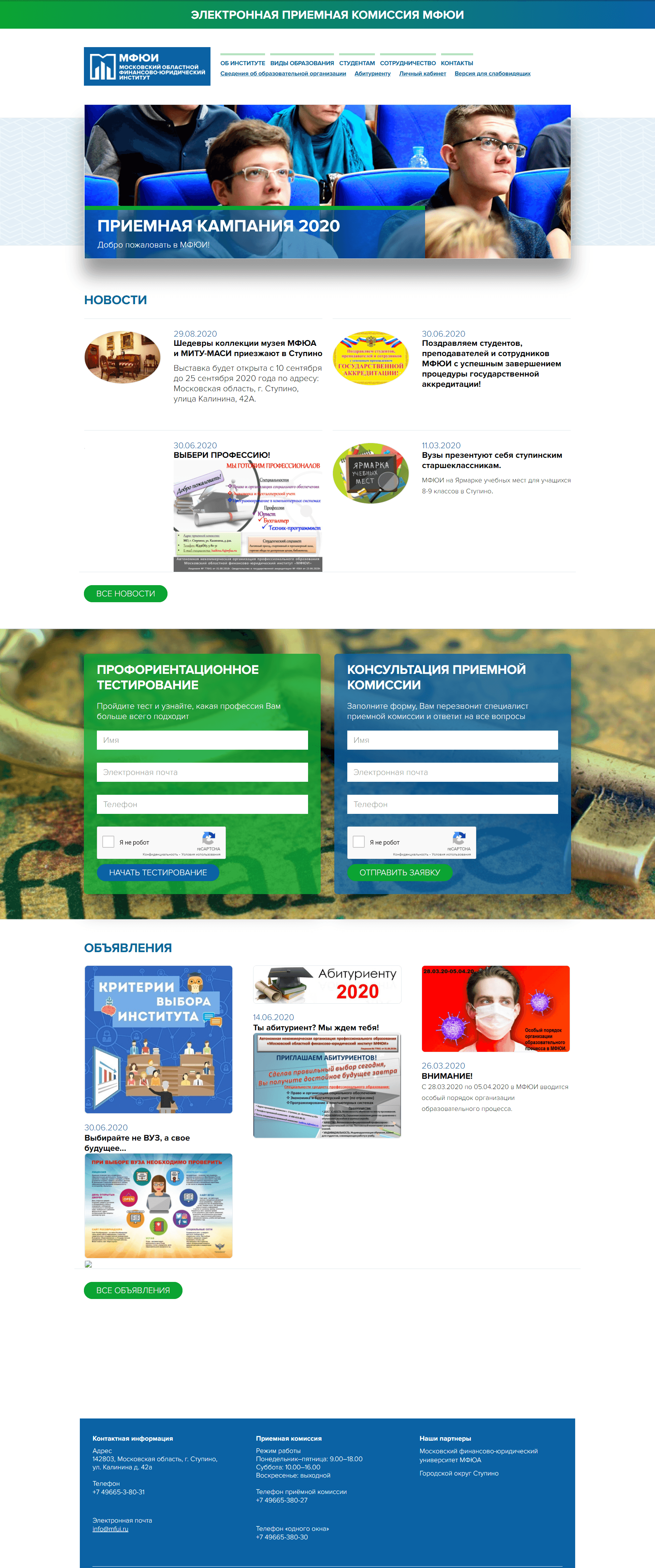 Создание сайта Московского областного финансово-юридического института