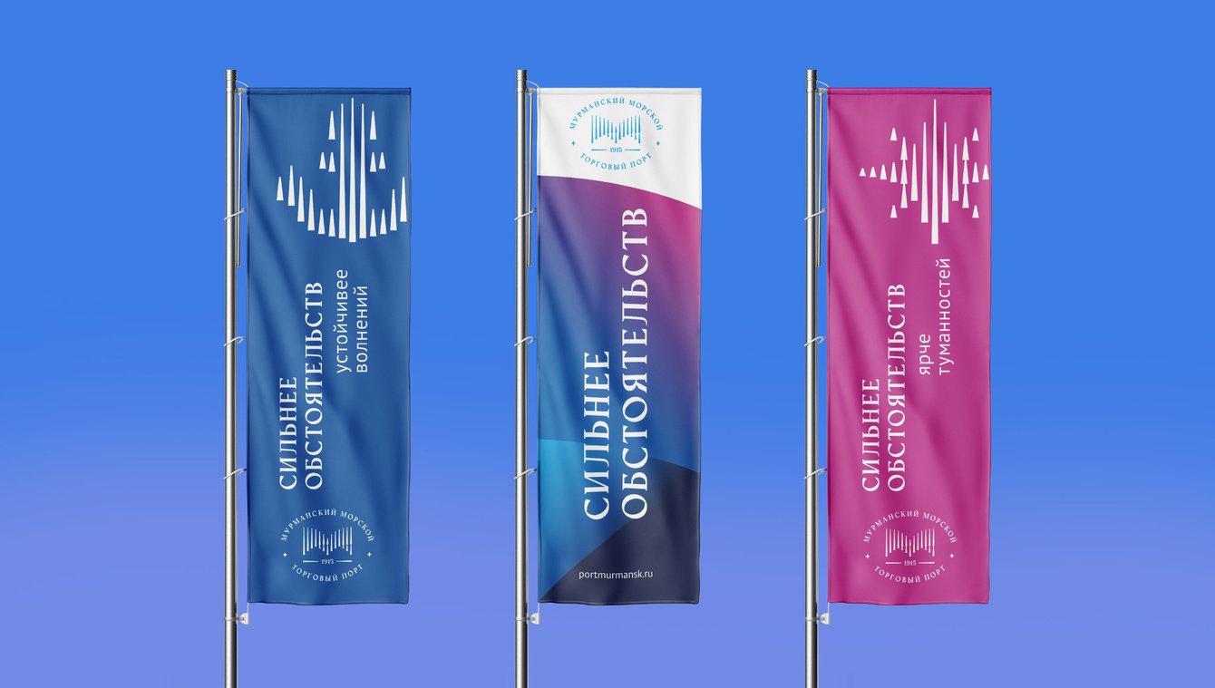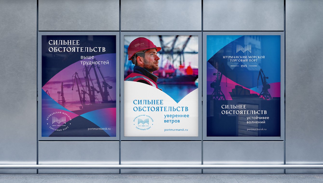 Далее у нас оформилась платформа — остальные смысловые сущности порта: миссия, видение, характер, ценности, причины верить. Все это с разных сторон отразило и высветило образ бренда ММТП, который мы емко раскрыли завершающим штрихом — слоганом «Сильнее обстоятельств». О стабильности, выдержке, жизнестойкости и жизнелюбии.