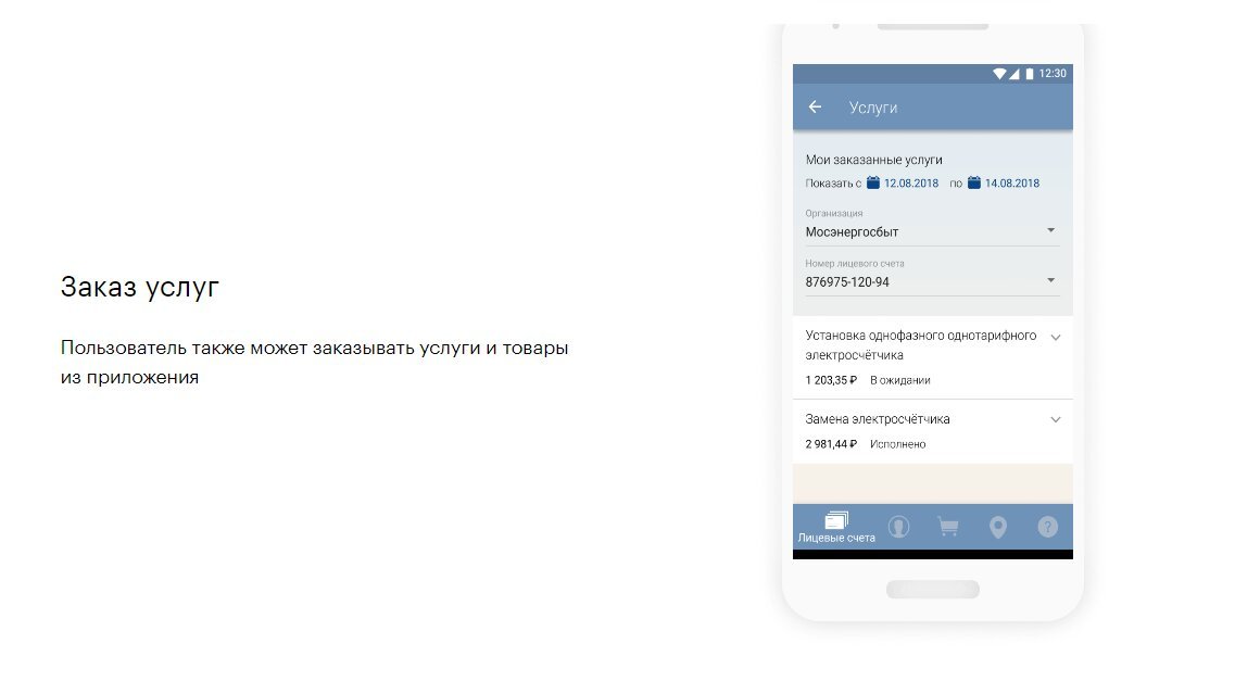 Мобильное приложение для управления своими лицевыми счетами у поставщика электроэнергии