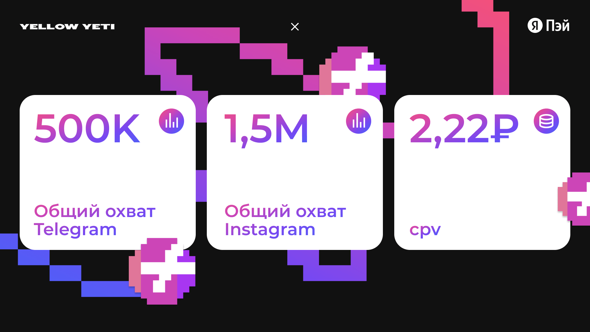 С помощью размещения реальных арт-объектов в Москве и креативных посевов в Telegram-каналах и у Instagram-блогеров мы рассказали ЦА о Яндекс Пэй как о выгодном способе оплаты.
