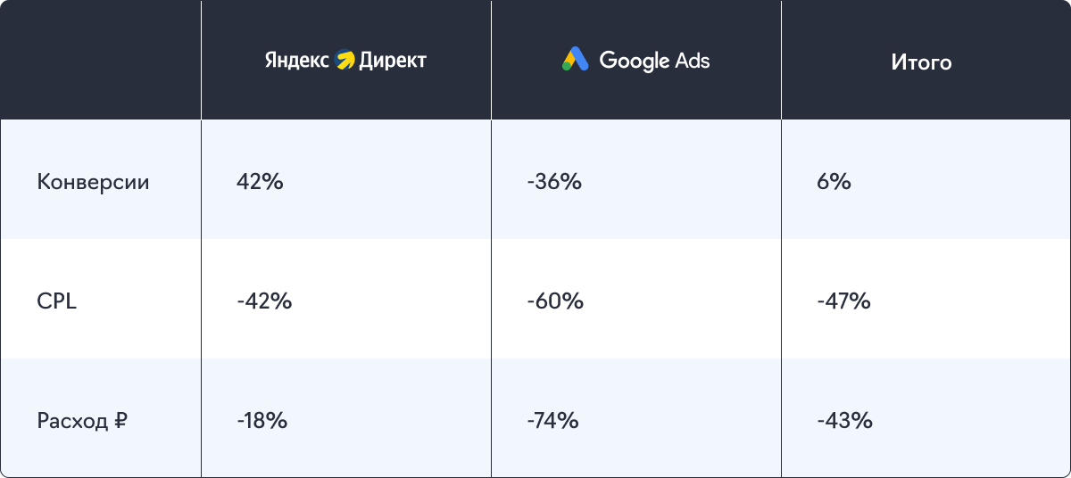 - Расширили семантические ядра всех рекламных кампаний обеих систем.