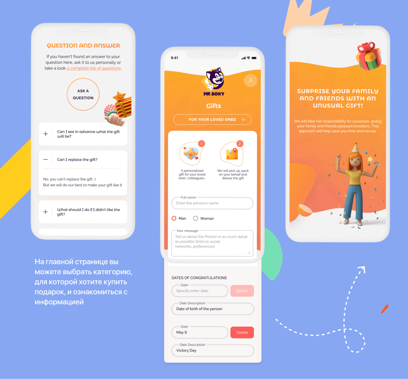 Для решения этой задачи мы разработали комплексный сервис, включающий мобильное приложение и веб-платформу. Мы начали с проведения исследования рынка и анализа потребностей пользователей, чтобы точно определить функциональные требования. Затем мы создали интуитивно понятный интерфейс, который позволяет пользователям легко указать параметры подарка, такие как возраст и интересы получателя, выбрать бюджет и запланировать доставку.