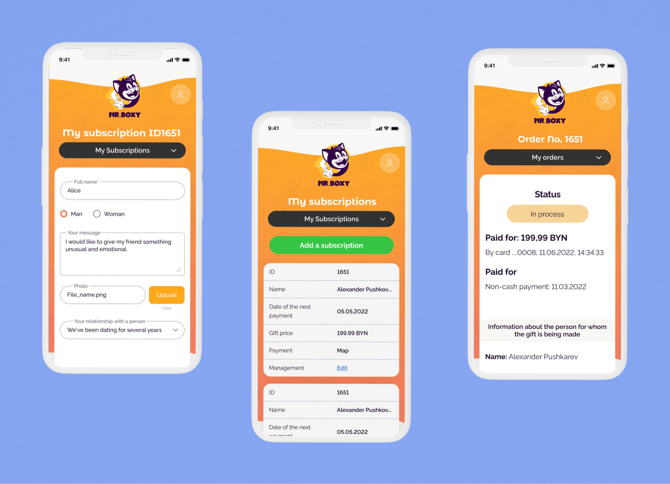 Результатом нашей работы стало создание удобного вебсайта и адаптива. Сайт и приложение позволяют пользователям легко находить и заказывать персонализированные подарки с помощью интуитивно понятного интерфейса и формы выбора параметров подарка. Мы также обеспечили функционал онлайн-оплаты и планирования доставки, чтобы сделать процесс покупки максимально удобным для клиентов. Кроме того, благодаря адаптивному дизайну вебсайта , пользователи могут пользоваться нашим сервисом на любом устройстве, сохраняя при этом качество и удобство использования.