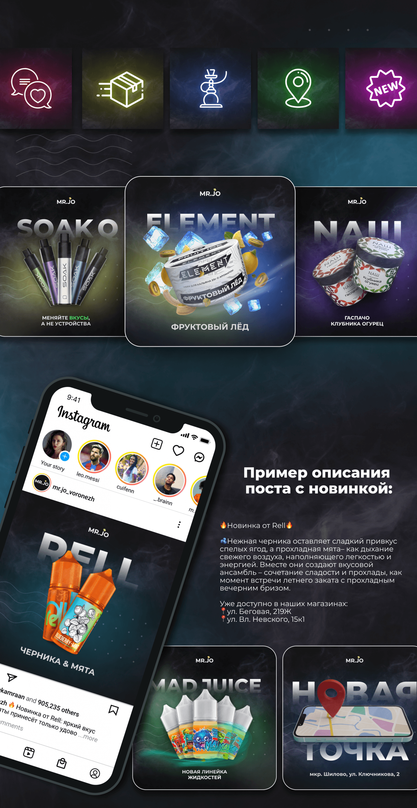 Благодаря проделанной работе сеть "Mr. Jo" значительно обошла конкурентов по уровню привлекательности продукта. Теперь наблюдается стабильный рост активности в социальных сетях компании. Заказчик более чем доволен.