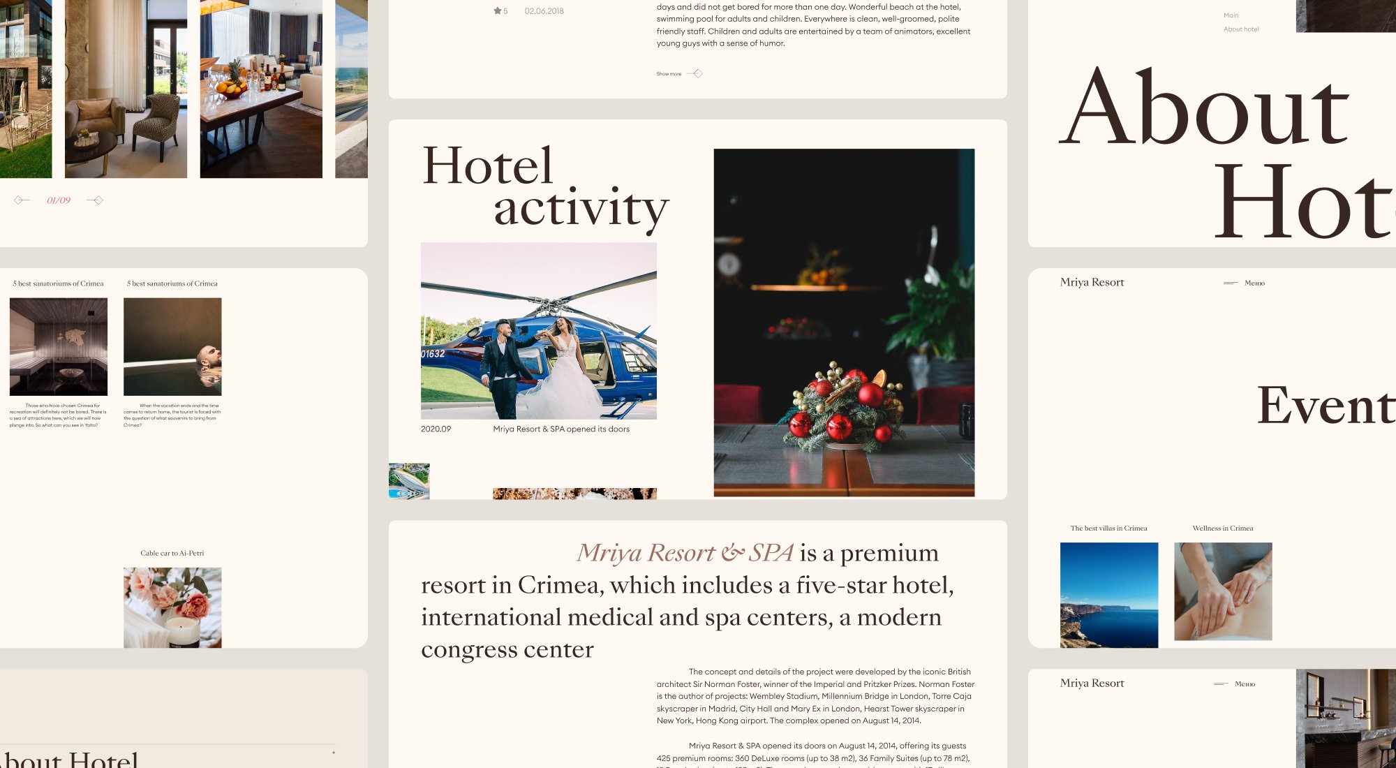 Практически самостоятельный и полноценный концепт сайта круглогодичного семейного курорта премиум-класса в Ялте. Поработали с типографикой, разместили красочные изображения, отрисовали экраны и написали сторителлинговый текст: всё для того, чтобы пользователь проникся атмосферой отдыха и захотел приехать именно сюда.