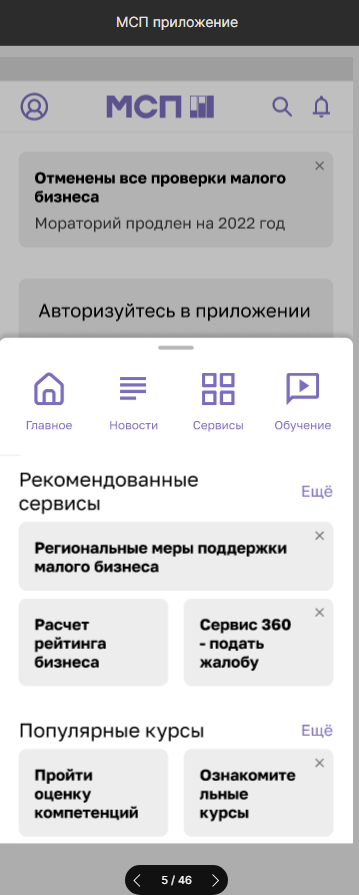 Работа над тестированием приложения МСП, участие в тестировании платформы для предпринимателей России