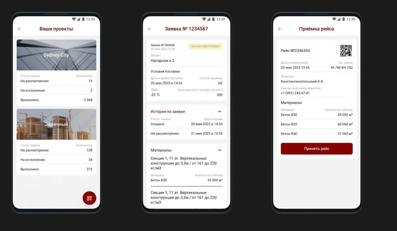 — Система заказа бетона. Строители могут заказывать бетон прямо в приложении со всеми требуемыми параметрами и принимать его по QR-коду. Компания Mintrocket сверстала и подключила бекенд.