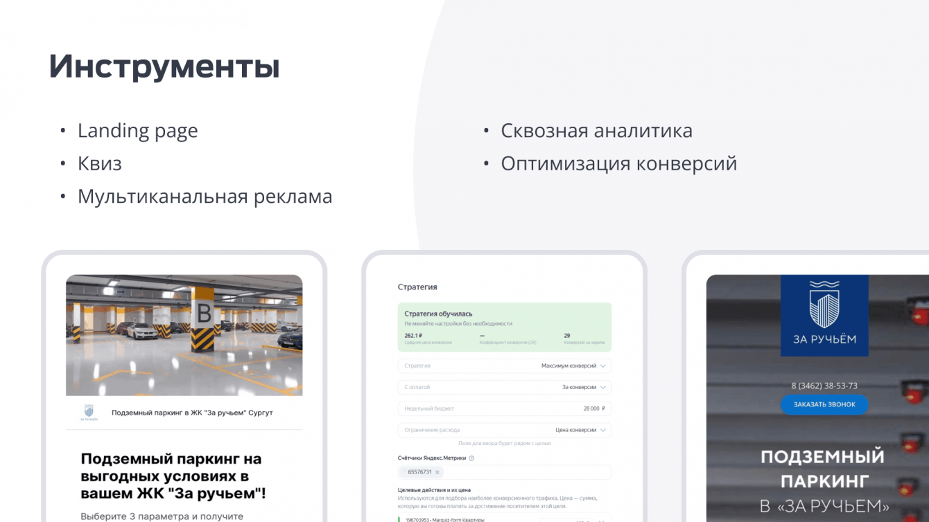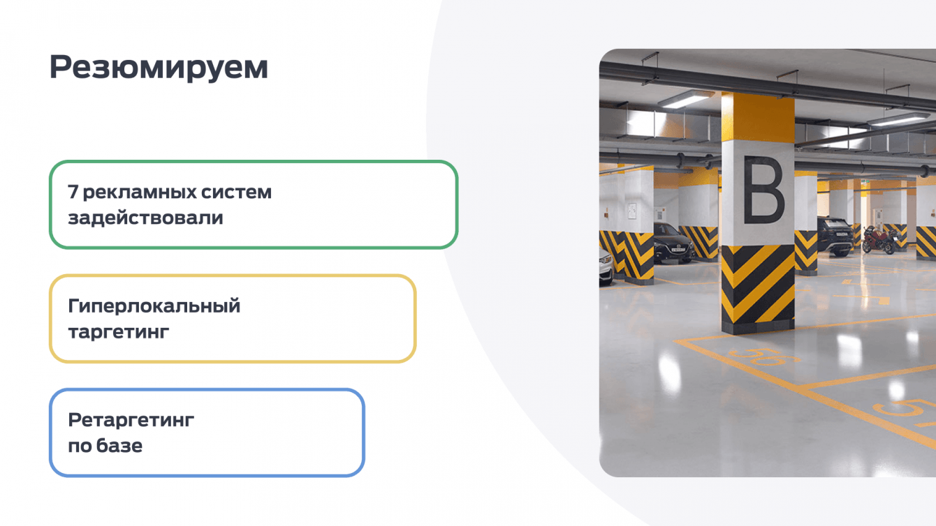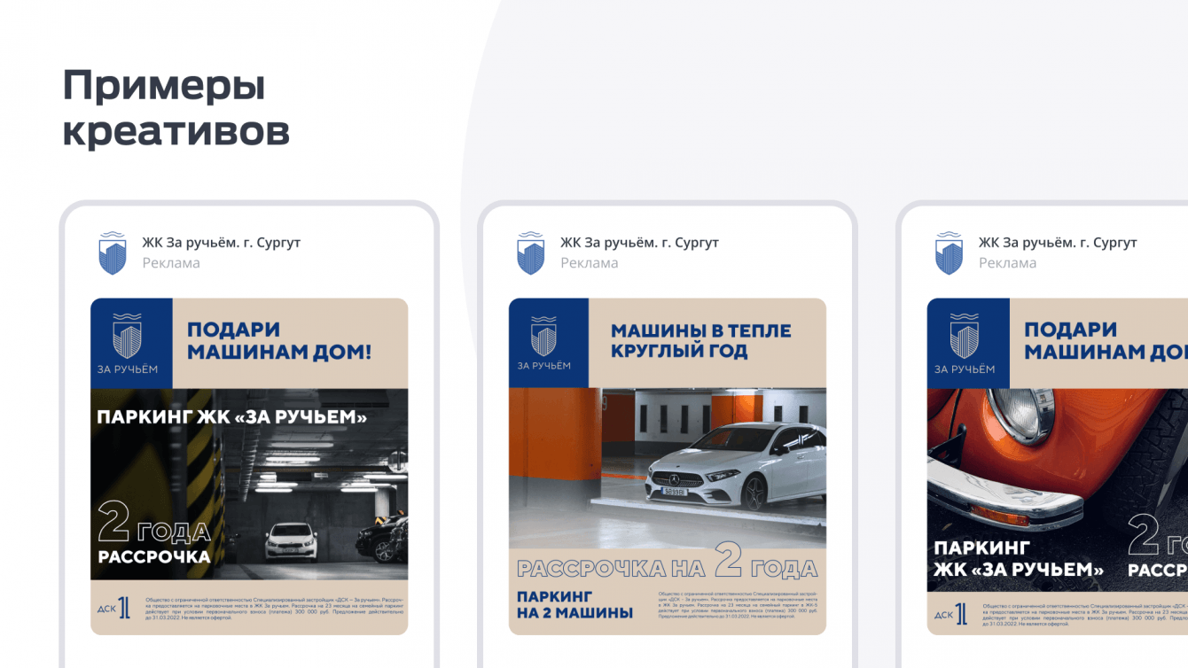 Требовалось разместить рекламу с таргетингом на жителей жилого комплекса и соседних домов, а также транслировать рекламу контактам из CRM системы. Так как аудитория очень узкая, необходимо было задействовать максимально возможное количество рекламных систем.