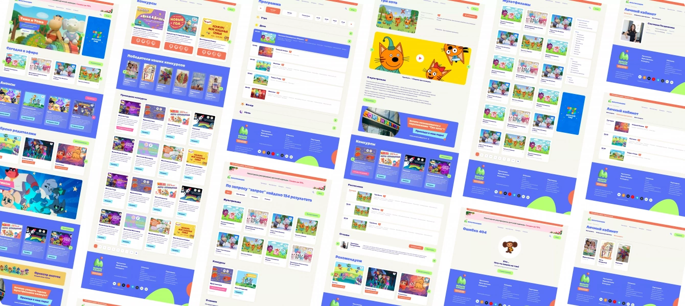 Сайт оформлен в соответствии с обновленным бренд-буком телеканала. Яркая цветовая палитра и плавные формы создают дружелюбную атмосферу, вызывающую доверие у детей и их родителей.