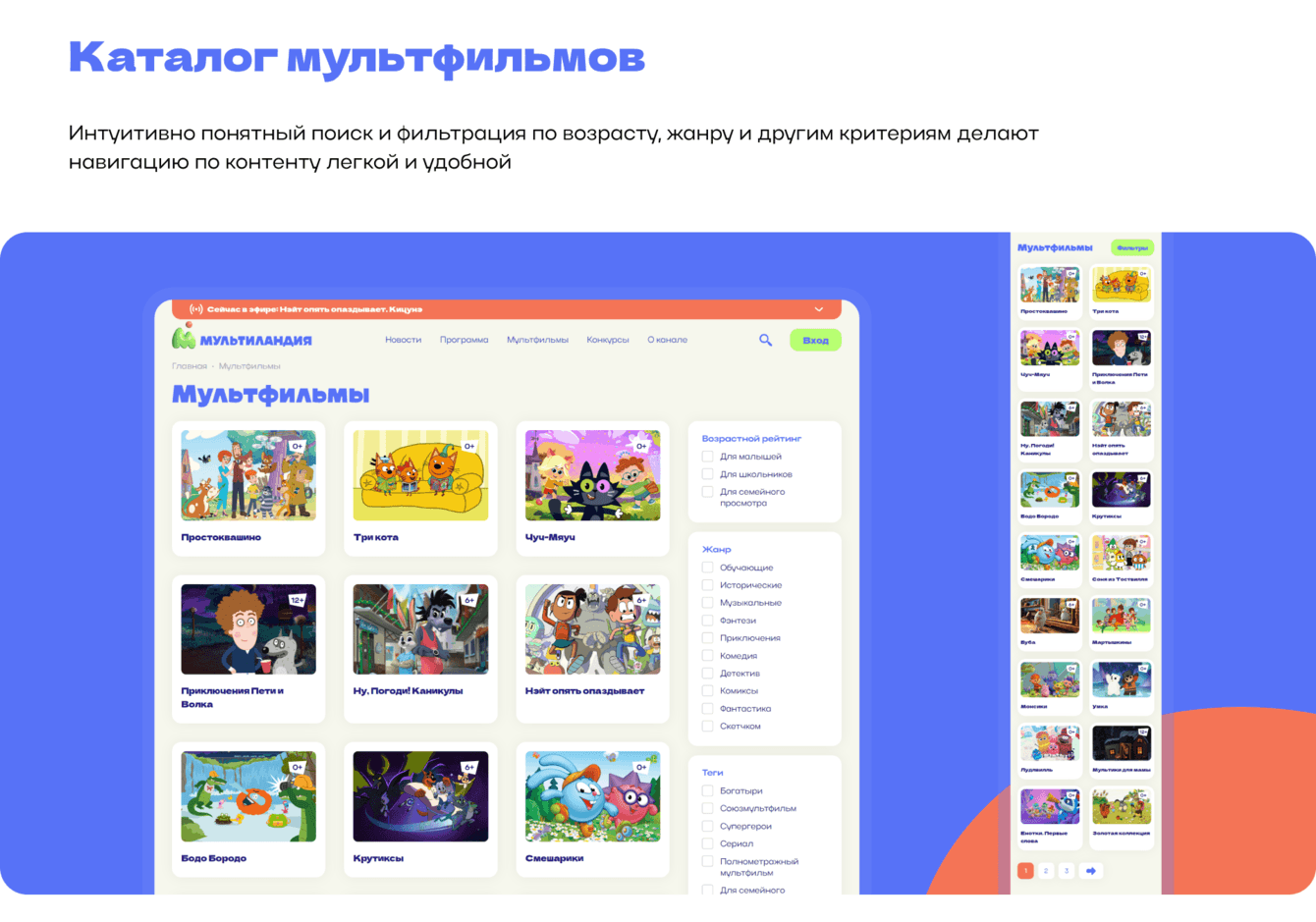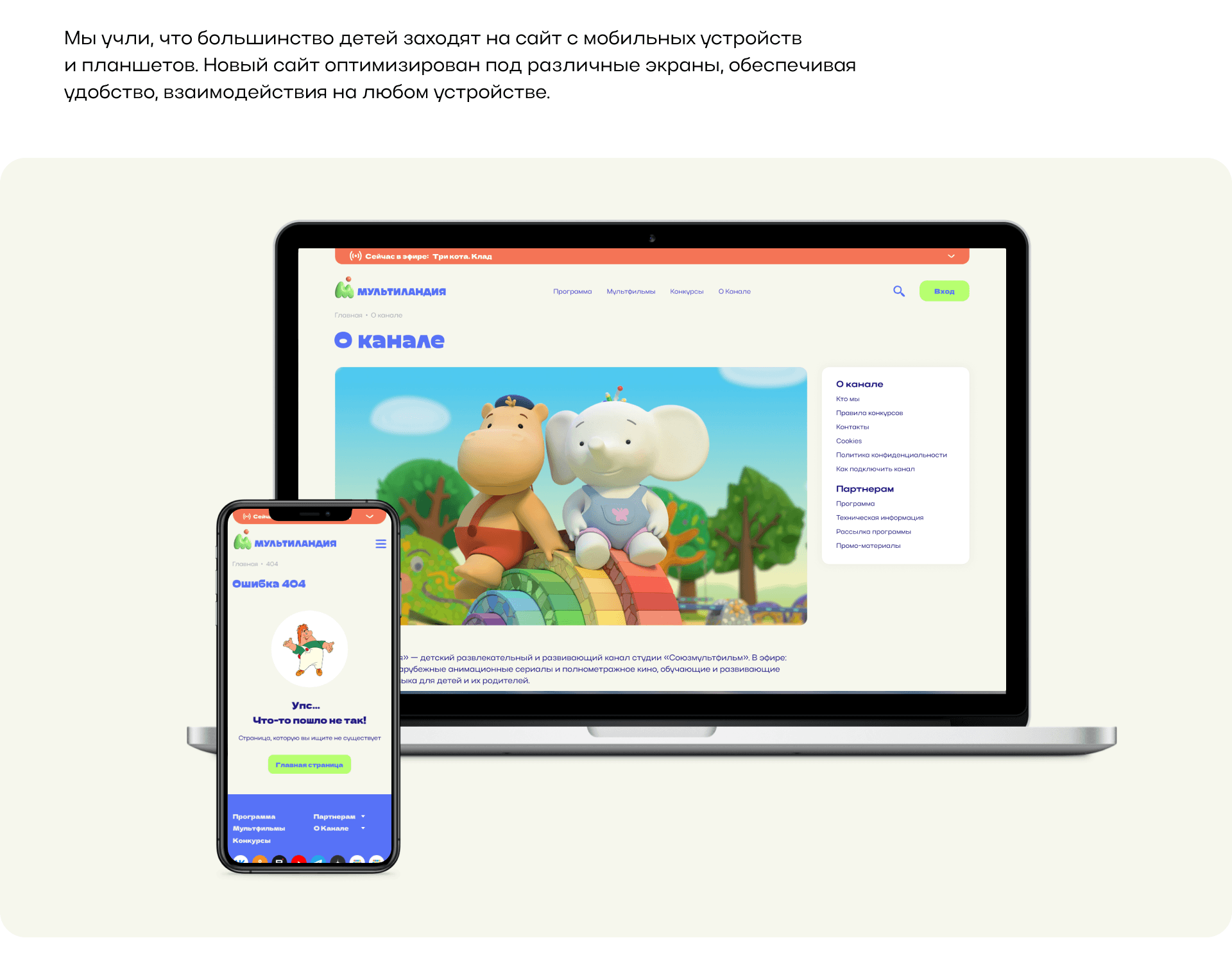 Обновлённый сайт телеканала «Мультиландия» — это не просто площадка для просмотра информации, а полноценный интерактивный портал, удобный для пользователя, современный и технологичный.