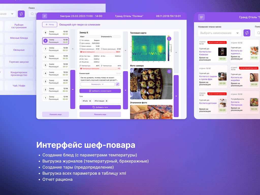 - Аппаратной, которая будет автоматически фиксировать вес, температуру и внешний вид каждого блюда.