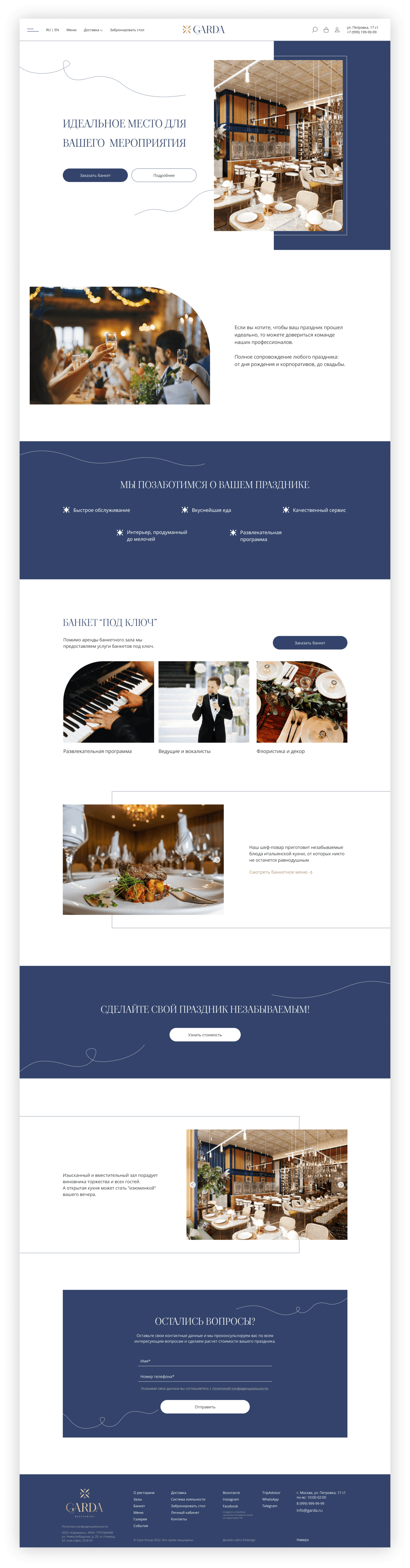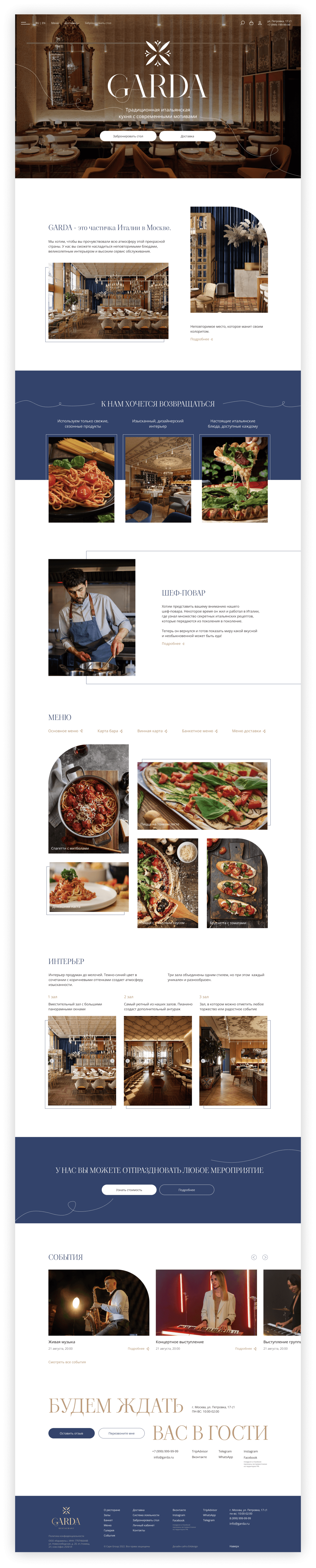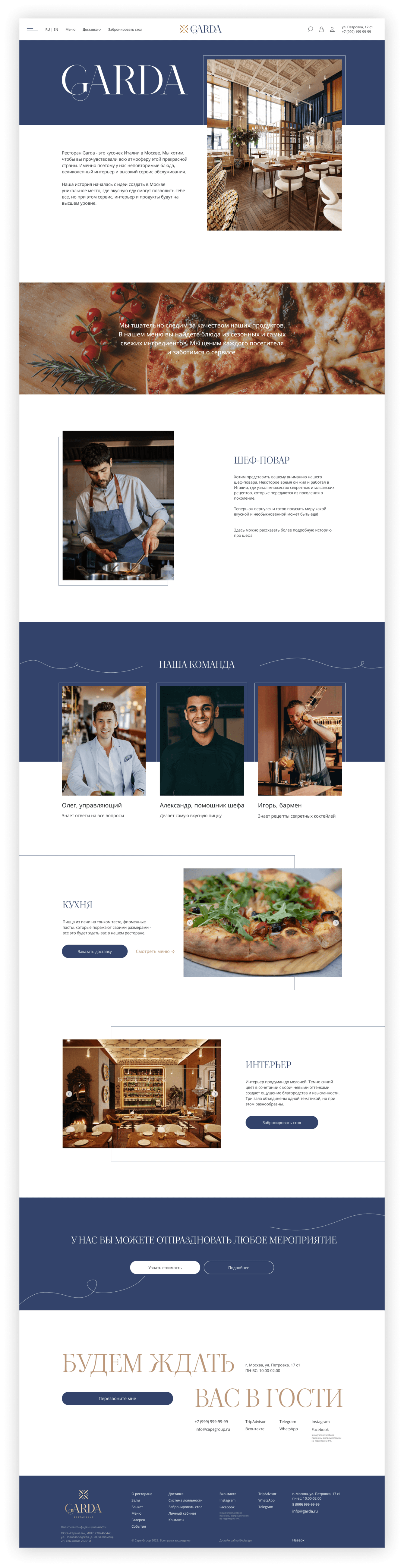 Сайт для итальянского ресторана “Garda”, который полностью отображает его концепцию: утонченный и элегантный.