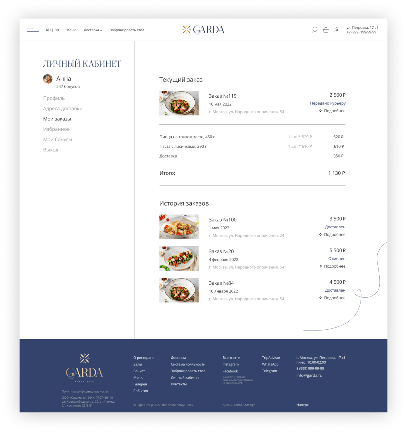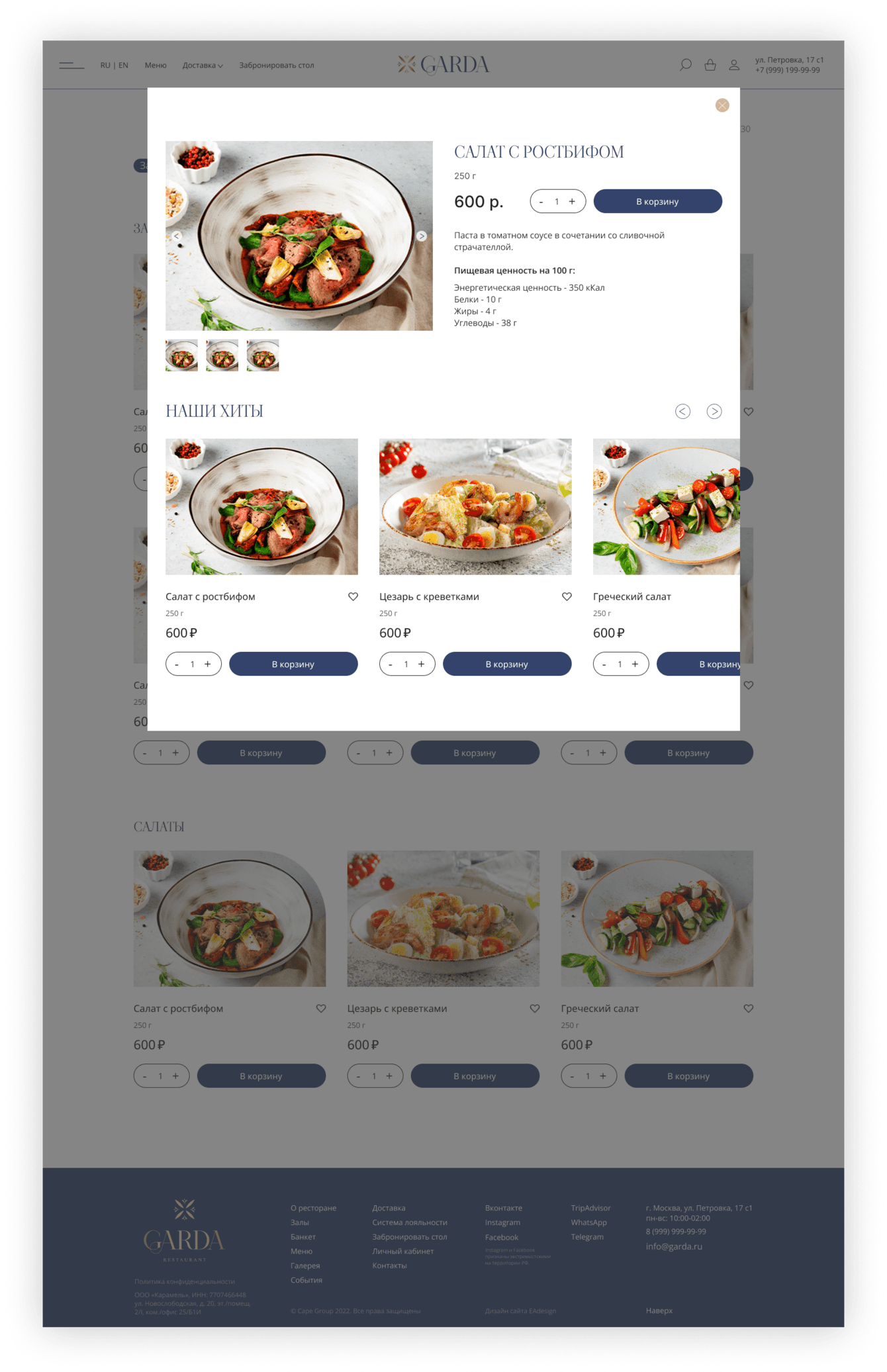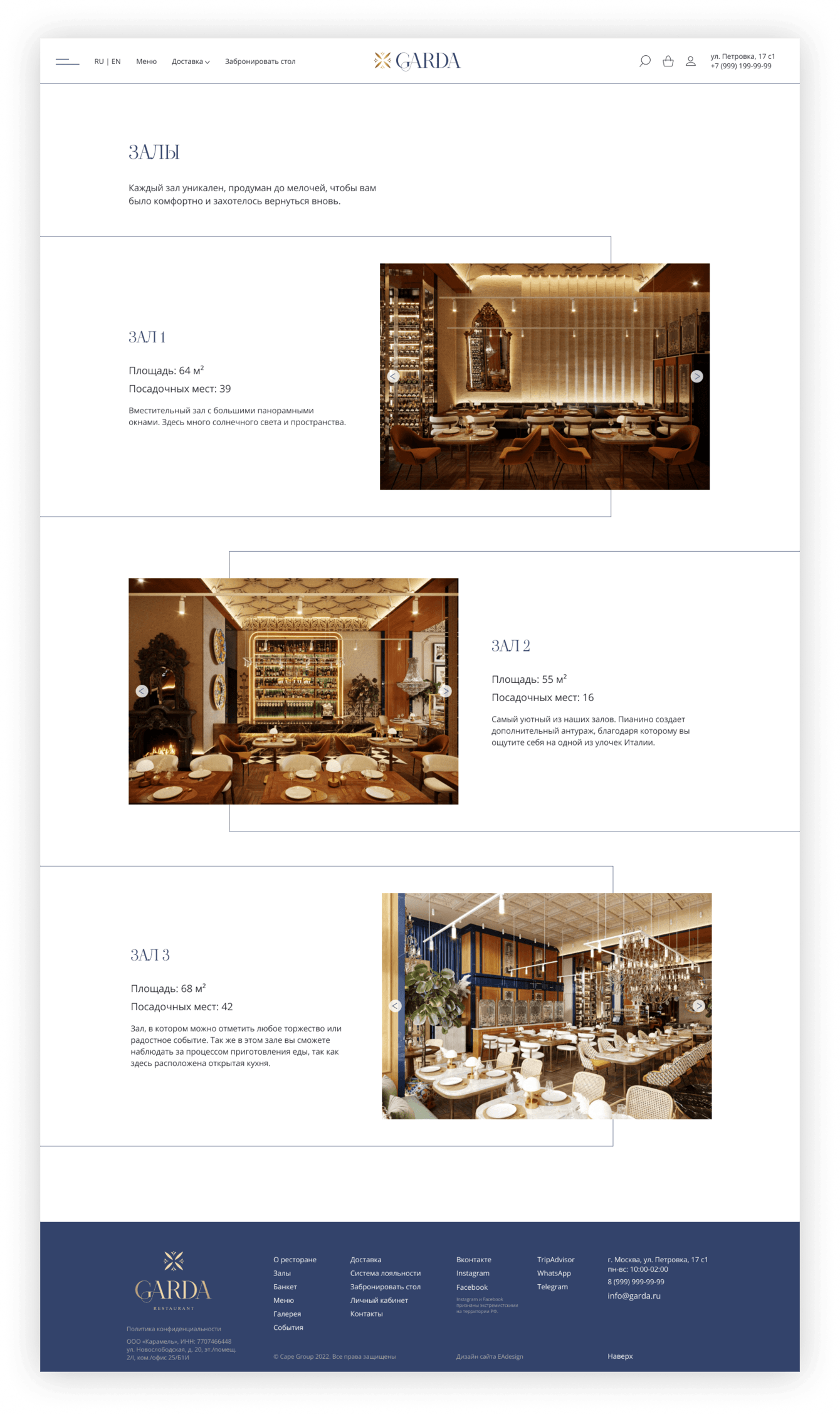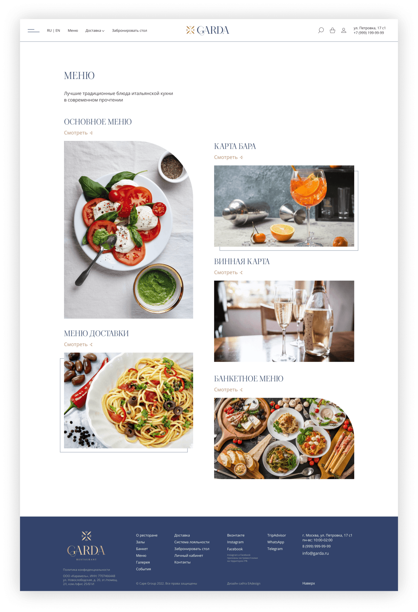 Сайт для итальянского ресторана “Garda”, который полностью отображает его концепцию: утонченный и элегантный.