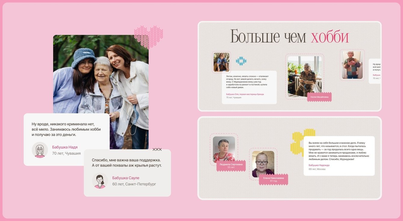 «Мурмуризм» — это бренд модной повседневной одежды, которую вяжут бабушки, матери-одиночки и люди с ограниченными возможностями здоровья. Над каждым изделием трудятся сразу несколько человек: дизайнеры разрабатывают понятные технологические карты, сотрудники бренда развозят пряжу по домам мастериц, которые затем стежок за стежком создают уникальную вещь.
