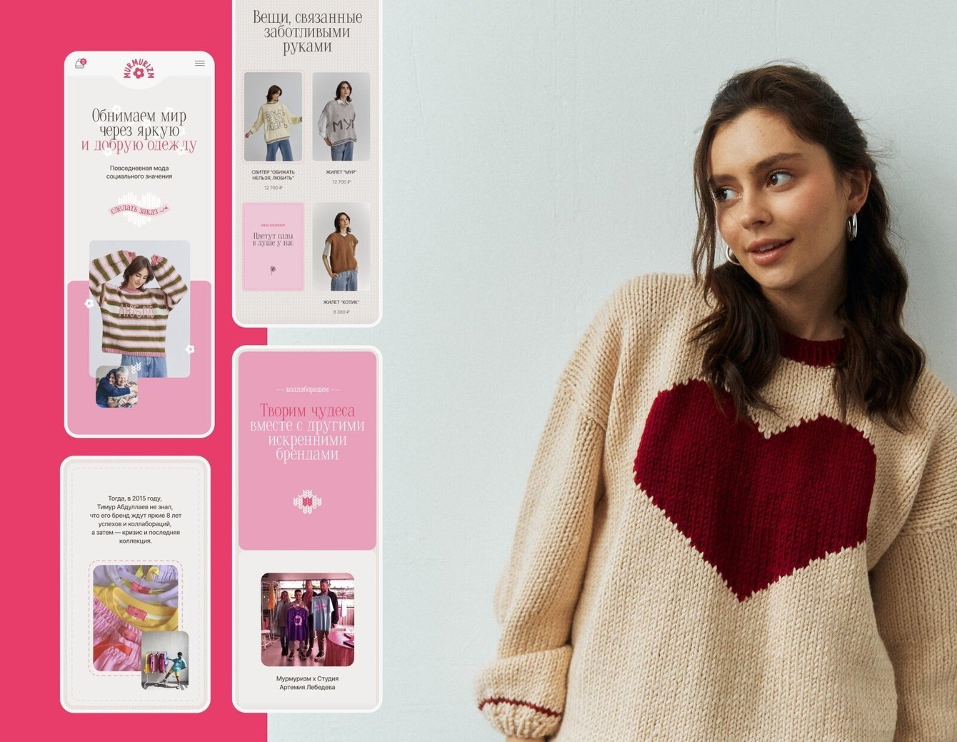 Новая искренность главным образом легла в основу текстов. К выбору каждого слова мы подошли с такой же заботой, с которой мастерицы «Мурмуризм» вручную создают красивые изделия. Нам было важно наполнить каждый блок сайта чувствами, которые человек получит благодаря бренду.