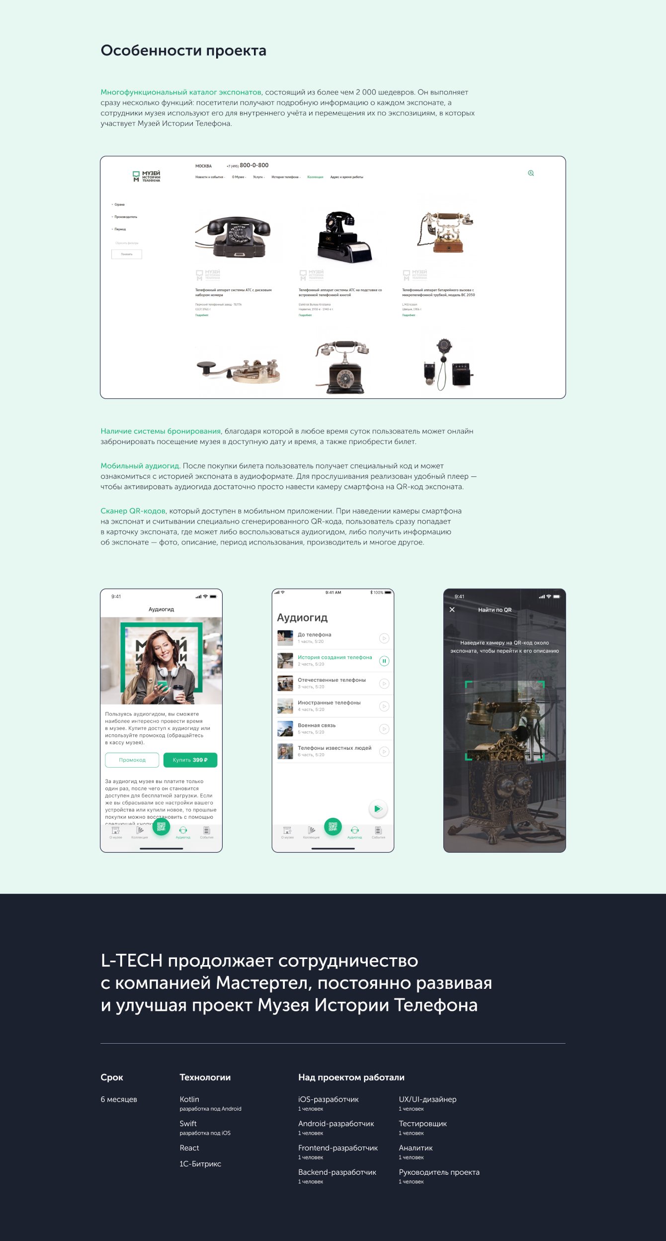 Сайт и мобильное приложение являются виртуальным путеводителем в мир истории телефона на русском и английском языке. Доступно на платформах web, iOS и Android.