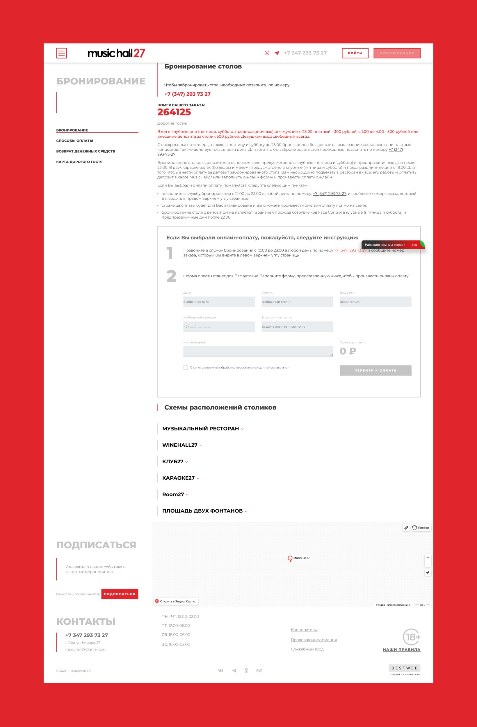 Осуществить полный редизайн сайта. Внедрить современные решения по он-лайн бронированию и оплате услуг музыкального ресторана, с максимально возможной автоматизацией.