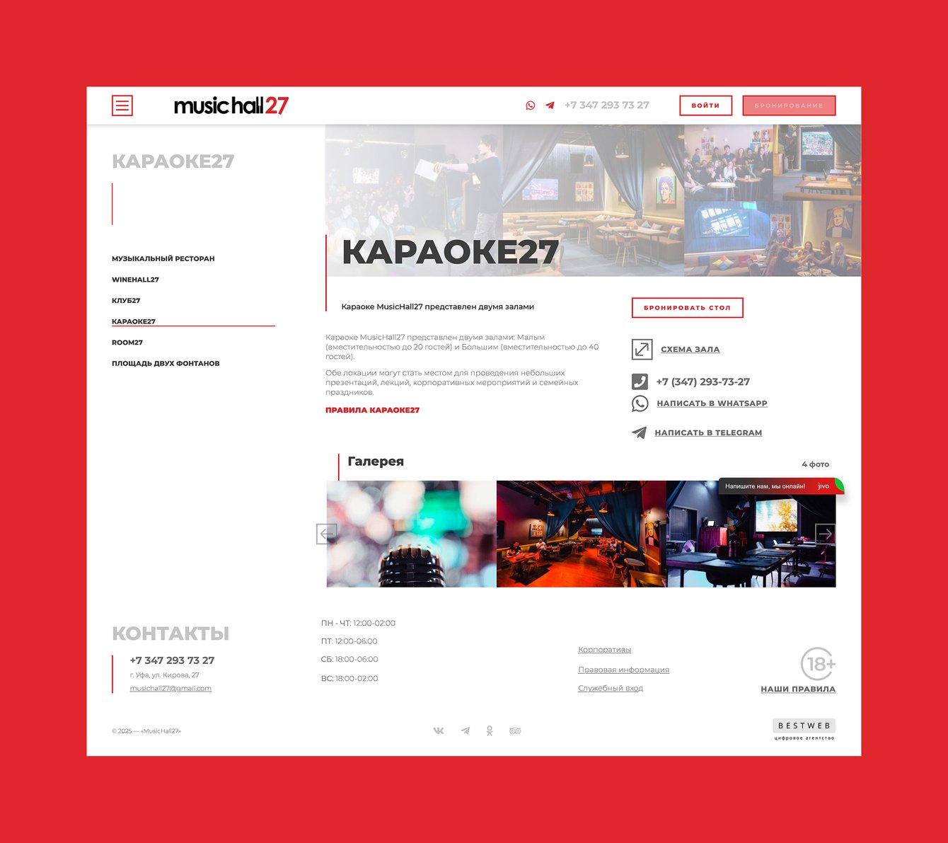 Музыкальный ресторан MusicHall27, с принципиально новой для Уфы концепцией ресторана и музыкального заведения, фактически сразу после своего открытия стал знаковым и очень популярным местом.