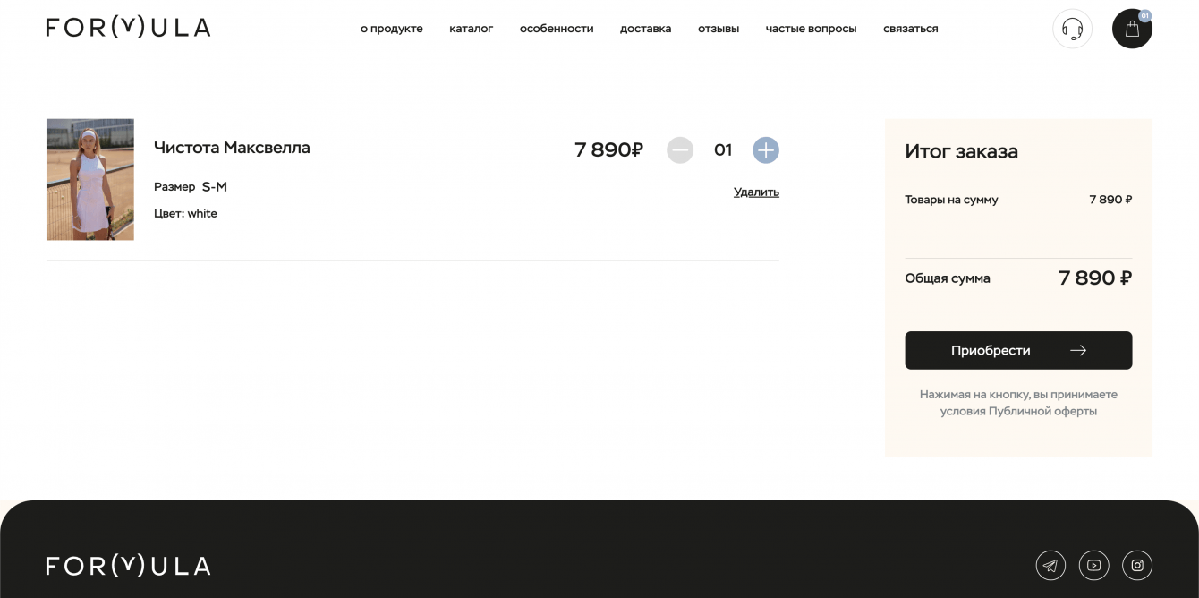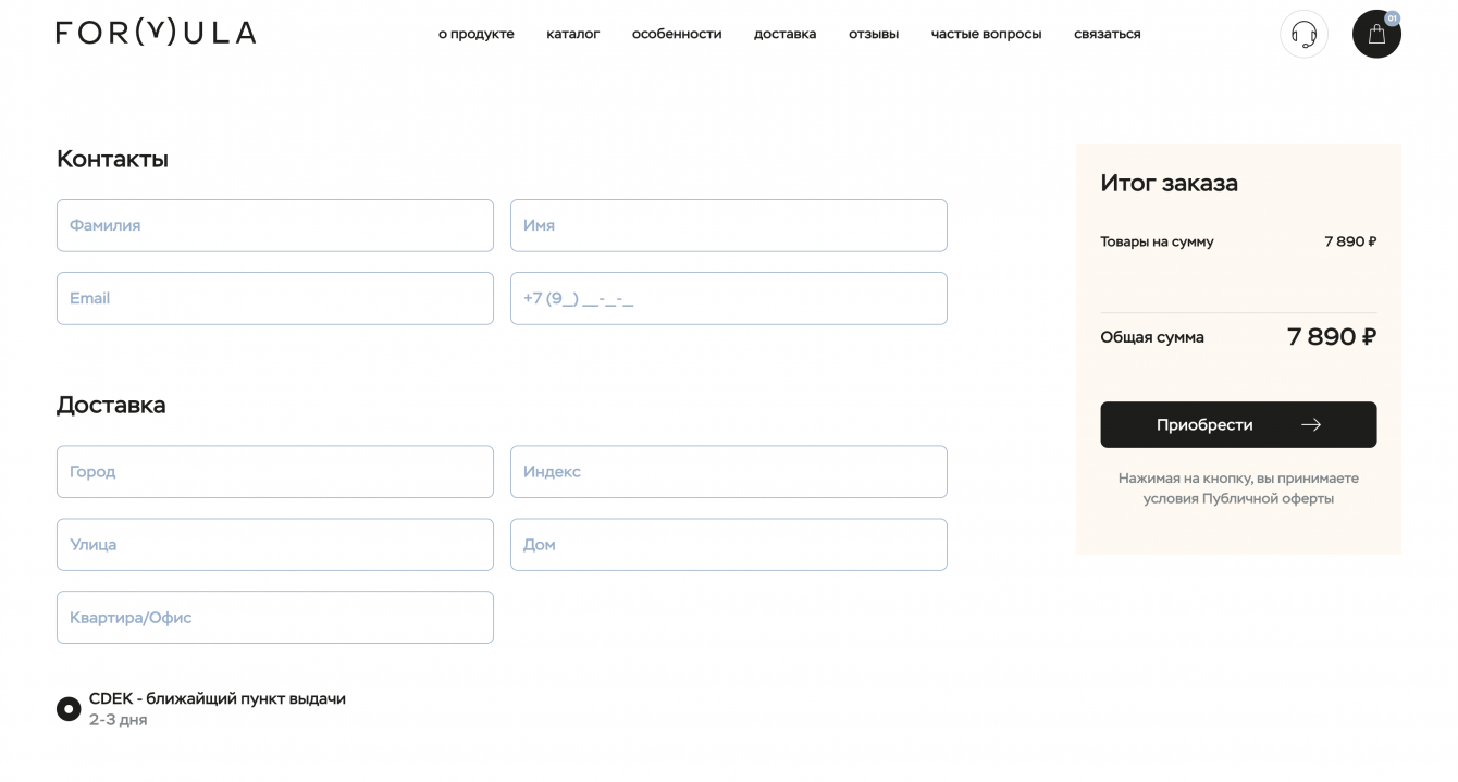 - основной трафик продаж был в соц сетях, поэтому от сайта требовалось только оформить заказ