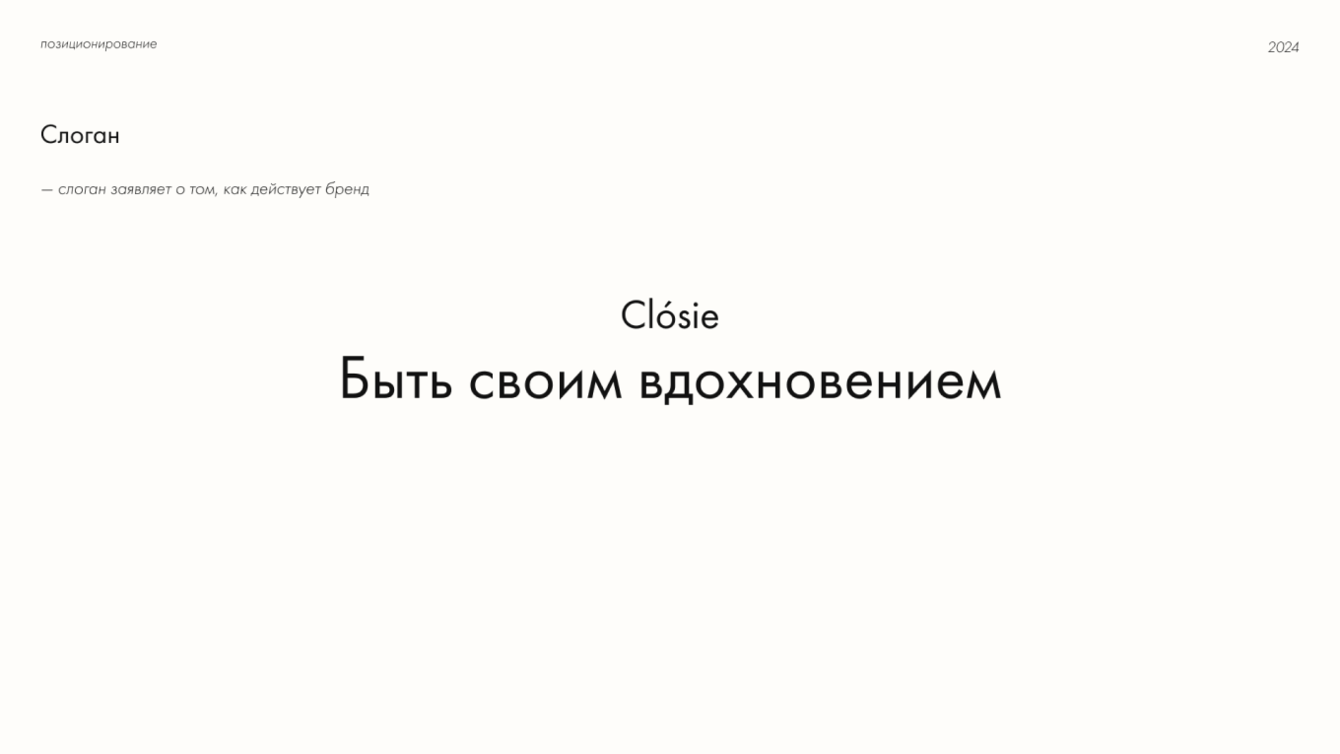 Следующий шаг — сформулировать миссию бренда. Нужно было ответить на вопрос: как и в чём именно бренд делает жизнь людей лучше? Мы держали фокус на вдохновении, уверенности в достижении целей и при этом комфорте, который выражает заботу о себе. Так, из миссии компании родился слоган.