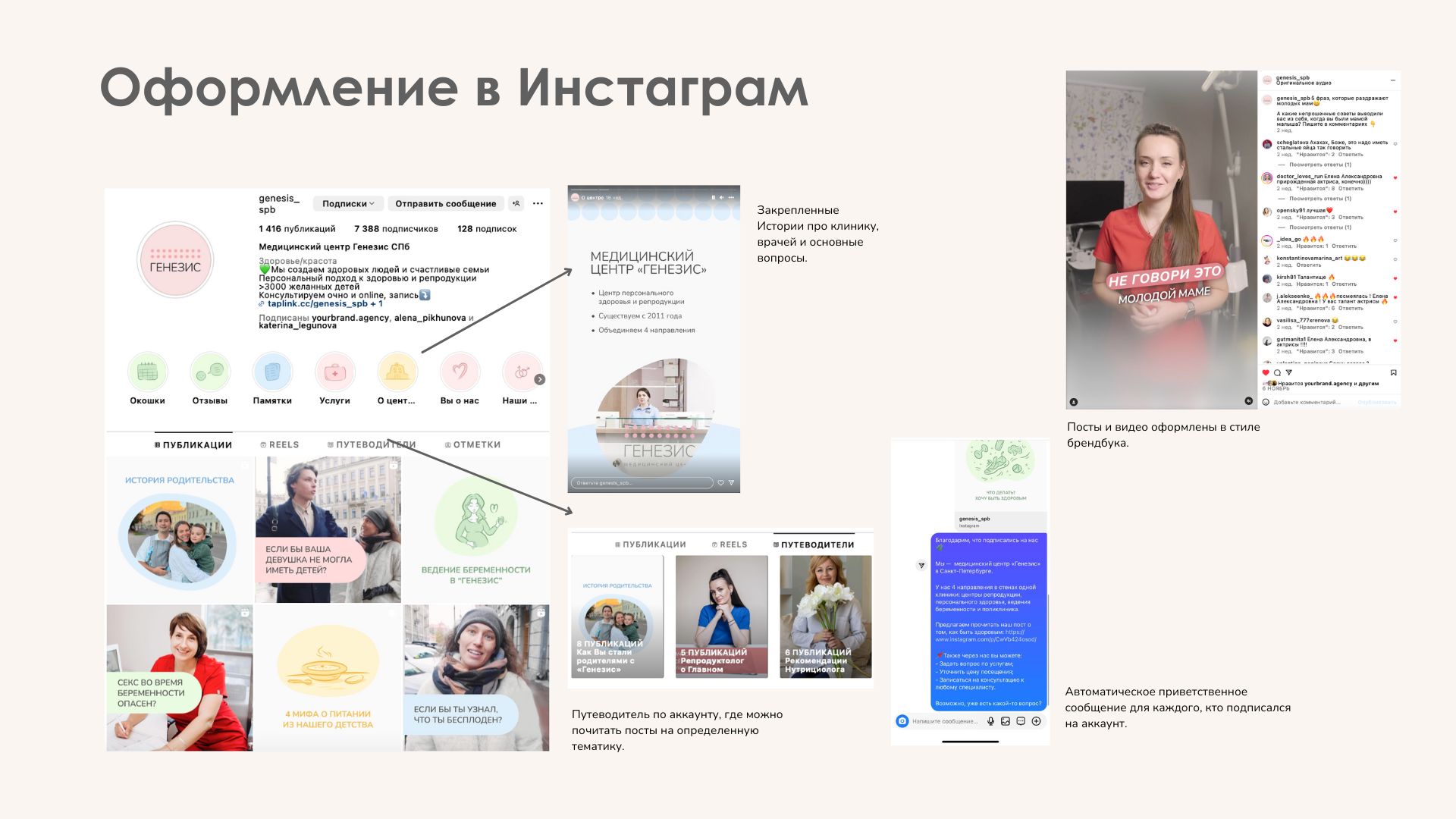 3. Instagram: Разработали с иллюстратором уникальные иконки, структурировали актуальное по воронкам (например, вели с Reels на подборку сторис о питании).