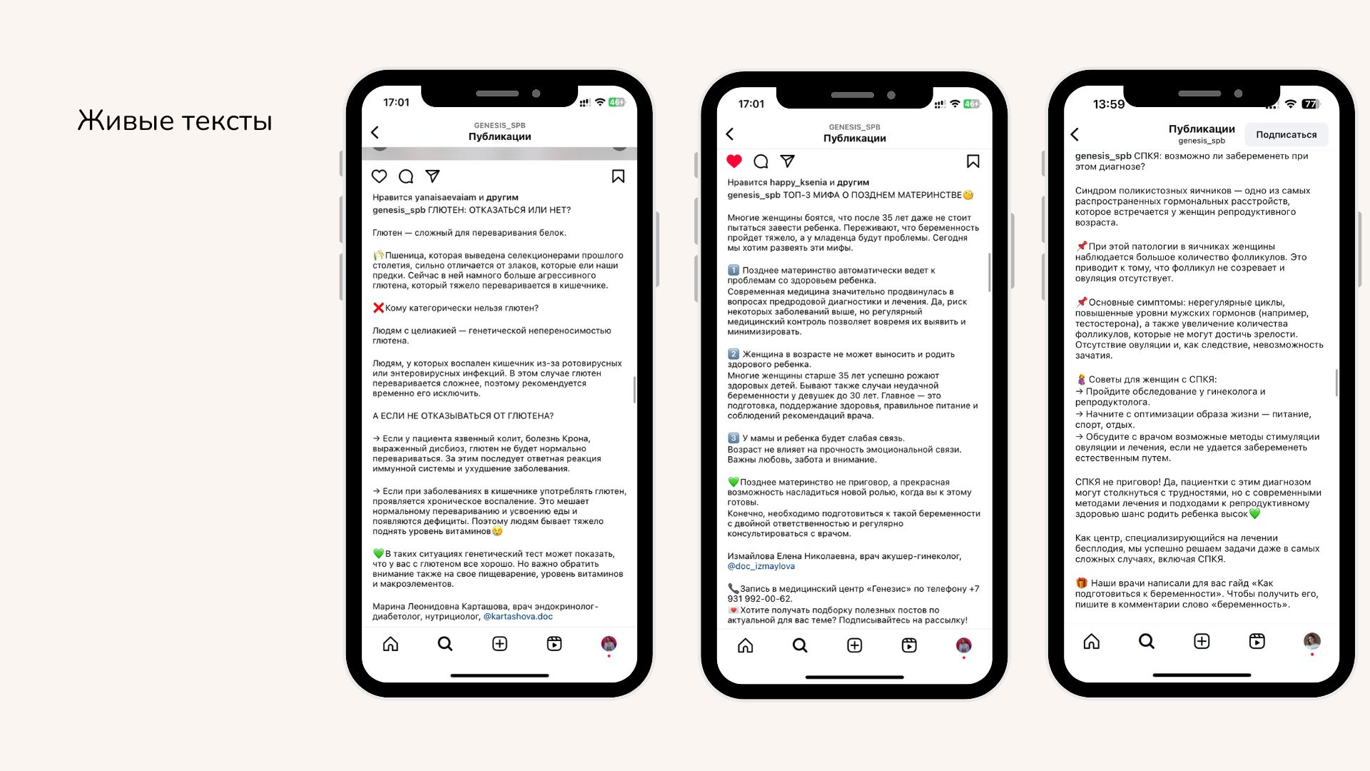 Копирайтинг: Вся информация от врачей проходила два этапа редактуры. Мы переводили «с врачебного на человеческий», чтобы посты были понятны и вызывали интерес.