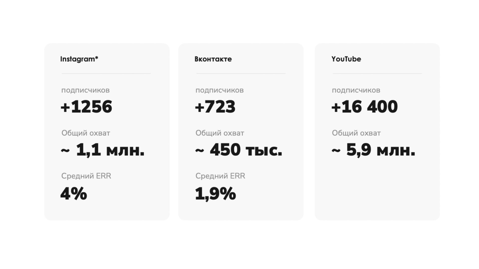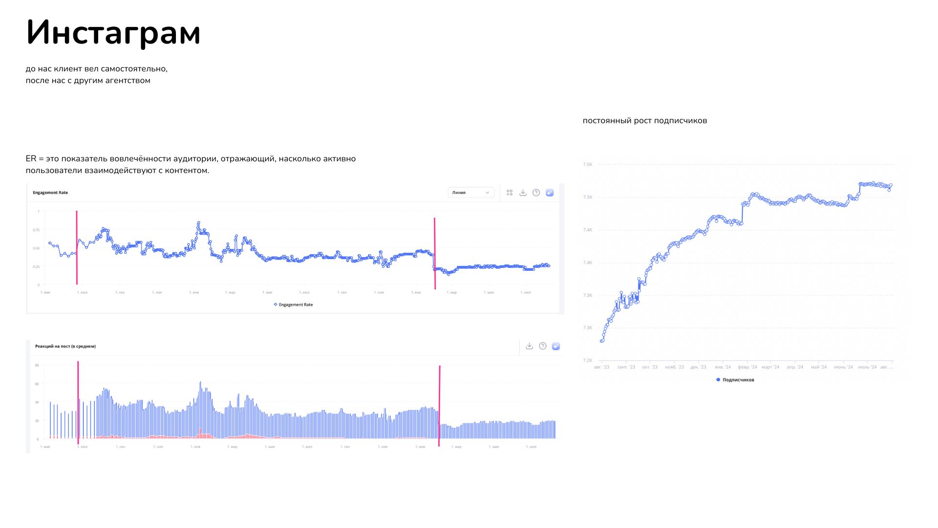 Instagram: Более 1 000 000 охвата и 21 600+ реакций. Мы оживили аккаунт и вырастили лояльное ядро аудитории.