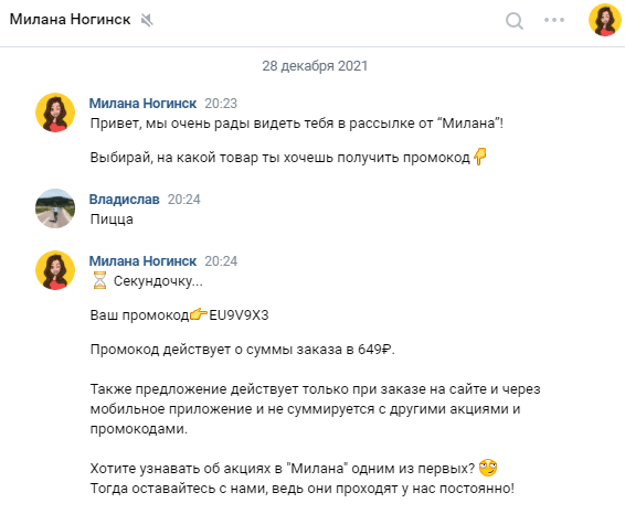 Подписчики получали скидки, акции, промокоды и призывы участвовать в активностях.