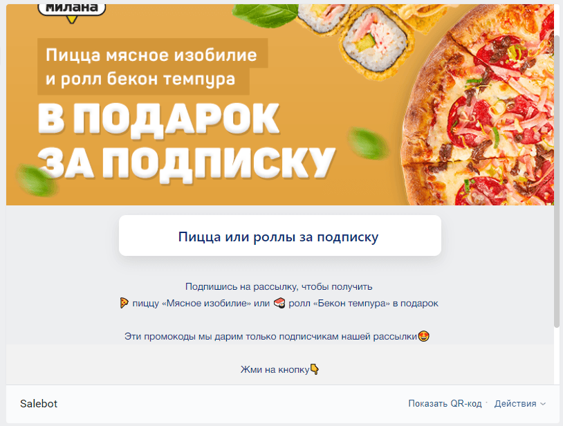 Для удержания и активации аудитории это отзывы довольных клиентов, демонстрация новинок в меню, подборки ТОП-позиций и индивидуальные скидки и предложения.