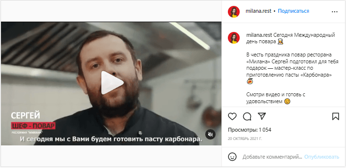 А в день повара опубликовали мастер-класс по приготовлению пасты, в котором представили подписчикам шеф-повара и показали кухню ресторана.
