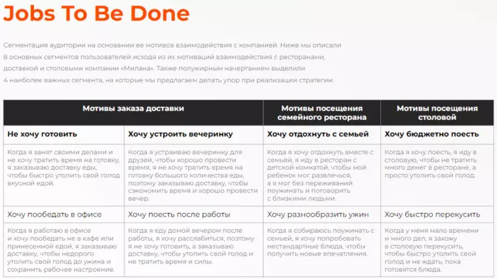 Метод JTBD помогает понять, как и почему люди принимают решение о первой покупке. На его основе мы выделили 4 наиболее важных сегмента, на которых затем сделали упор при реализации стратегии.