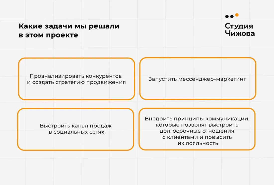 Перед нами поставили задачу выстроить новую стратегию, оптимизировать процессы и планомерно работать на увеличение продаж.