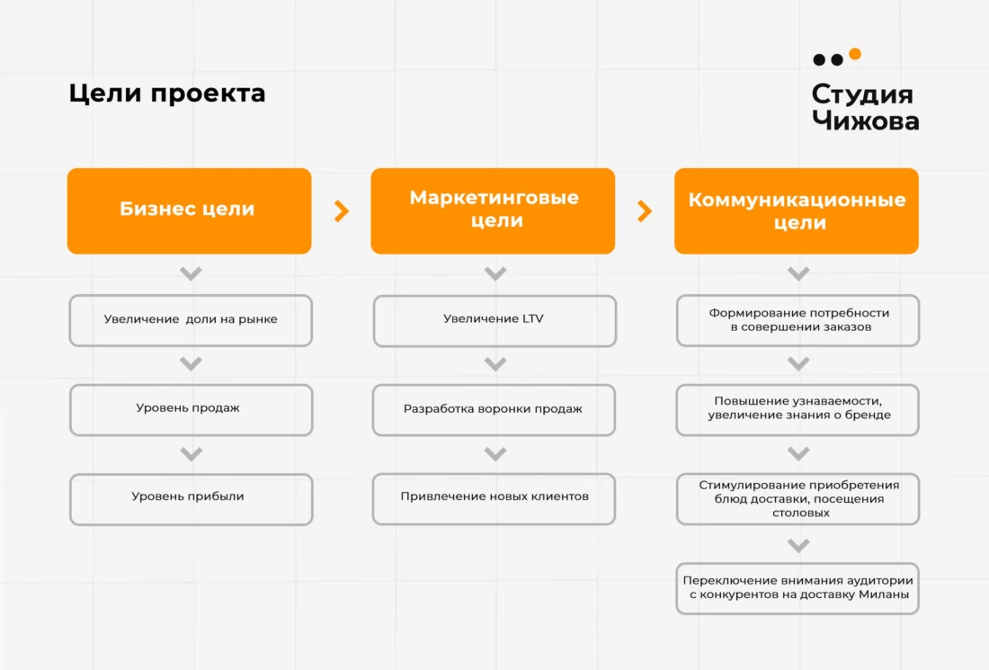 В рамках основной мы определили каскад более узких целей, которые позволят последовательно решать основную.