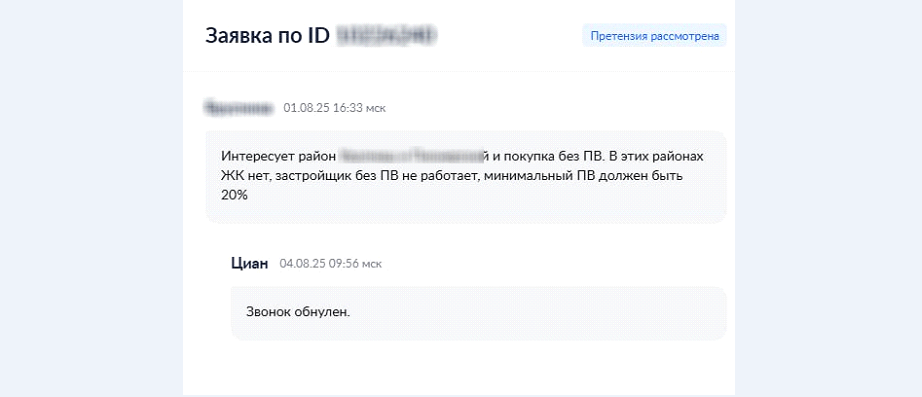 Приведем пример: поступил звонок с объявления, и, так как менеджеры были заняты, клиенту обещали перезвонить. Площадка, например “ЦИАН”, восприняла это обращение как целевое. Но впоследствии, после перезвона, выясняется, что у человека нет средств для первого взноса, а без него оформить покупку недвижимости не получится. Для нас такой звонок нецелевой. Для оспаривания мы делаем скрины из CRM-системы и доказываем свою правоту.