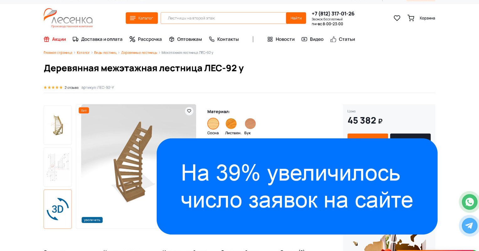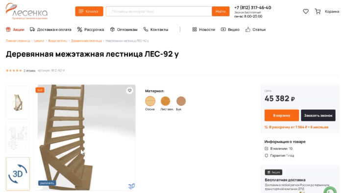 В рамках проекта были внедрены 3D-обзоры лестниц с возможностью их примерки в помещениях клиентов. Использовался облачный сервис Site3D Configurator.
