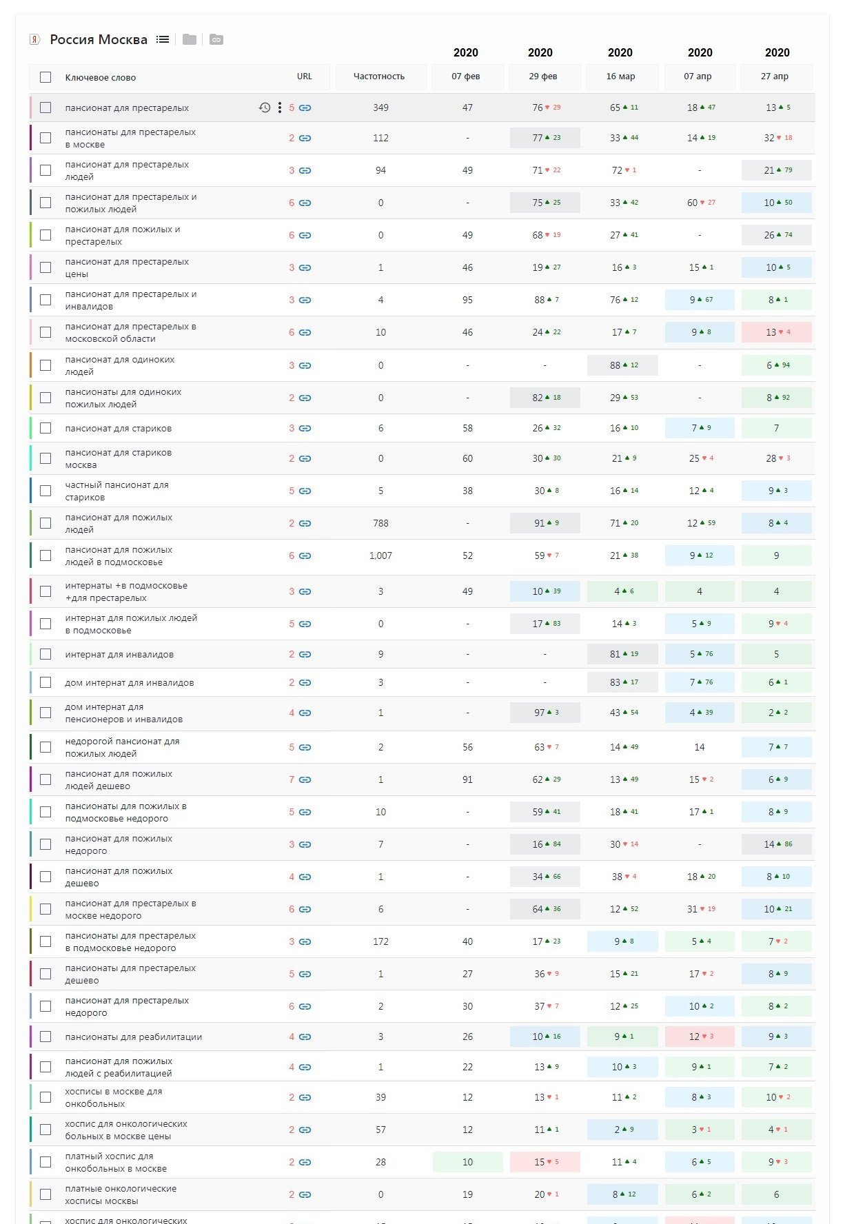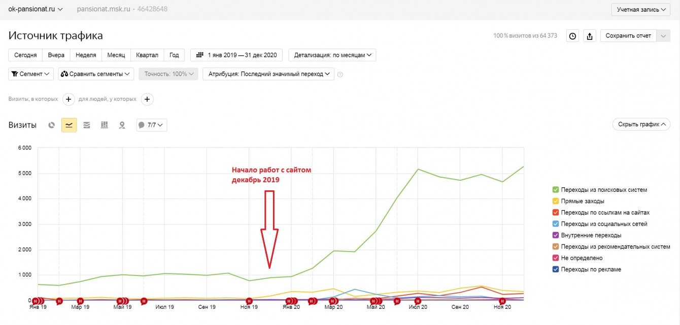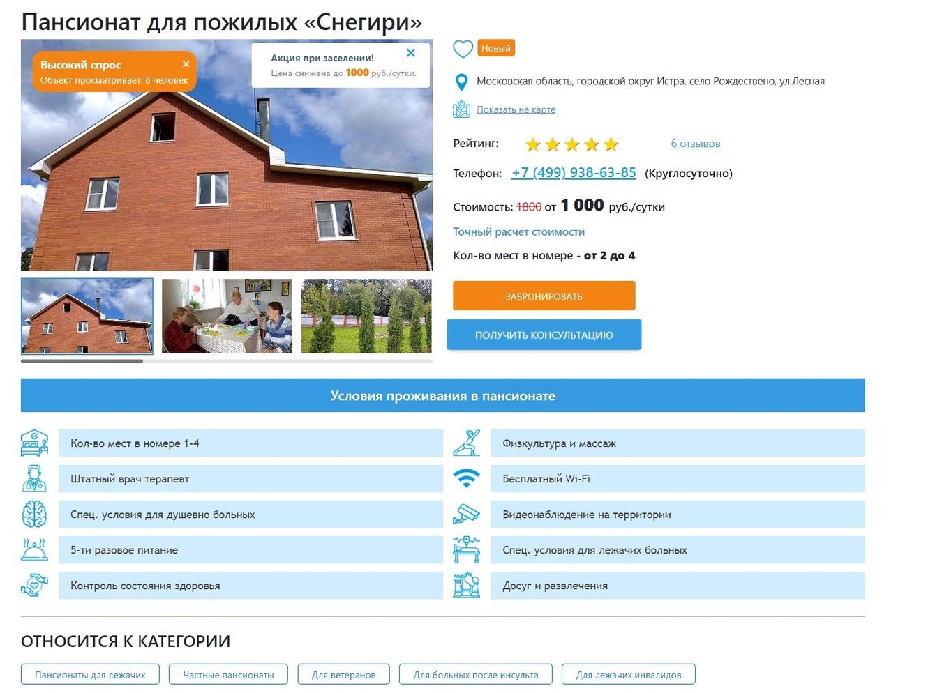 9) Увеличено количество карточек пансионатов на сайте с 50 до 500 для массовости и раскрытия запросного индекса, а также покрытия НЧ запросов, с которых удалось собирать лиды. Каждая карточка была вручную проработана и оптимизирована под НЧ ключи.