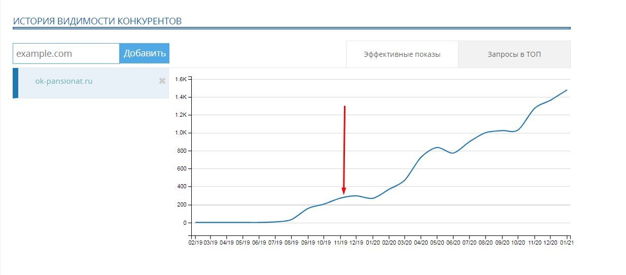 Видимость сайта увеличилась с 200 до 1600 +700% - прирост видимости за год.