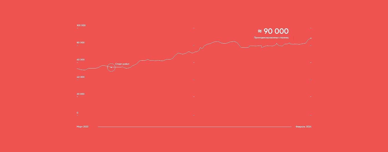*Количество проиндексированных страниц с марта 2023 по февраль 2024.