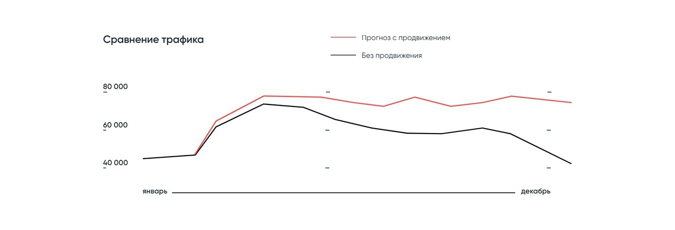 *Прогноз: сравнение трафика без SEO и с продвижением