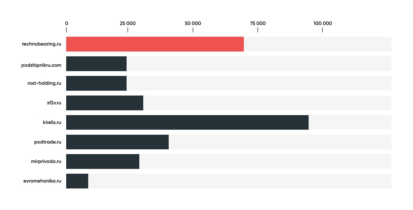 В тематике клиента много разных групп запросов. Например, в категории «шариковые подшипники» есть несколько подкатегорий. Если создать целевые страницы под каждую из них, проработать фильтры и оптимизировать текстовые блоки под запросы пользователей, трафик заметно вырастет.