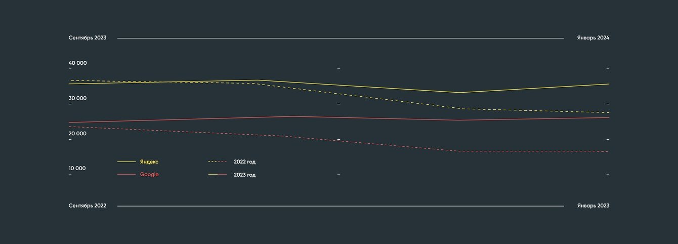 *Сравнение поискового трафика за январь и февраль 2024 с трафиком за тот же период 2023.