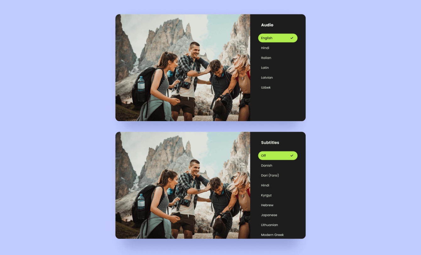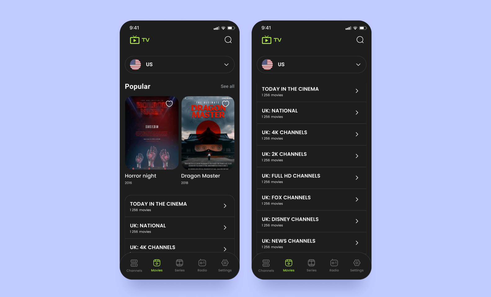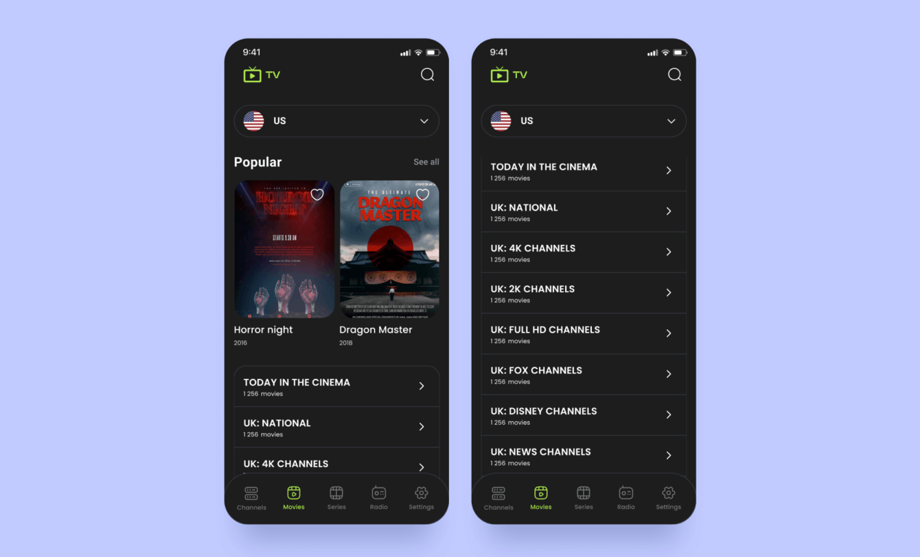 У контент-приложений уже есть устоявшиеся паттерны, и нам было важно сохранить их, чтобы люди легко ориентировались в нашем приложении. В отдельных местах мы улучшили базовый набор. Например, в плейлистах, загружаемых пользователем, контент базово сгруппирован только по темам. В нашем приложении есть фильтрация еще и по языкам – зрители в два клика выбирают подходящие озвучку и субтитры. Мы не только сильно упростили жизнь пользователям, но и выделили бренд среди конкурентов — у других IPTV-приложений такой функции нет.