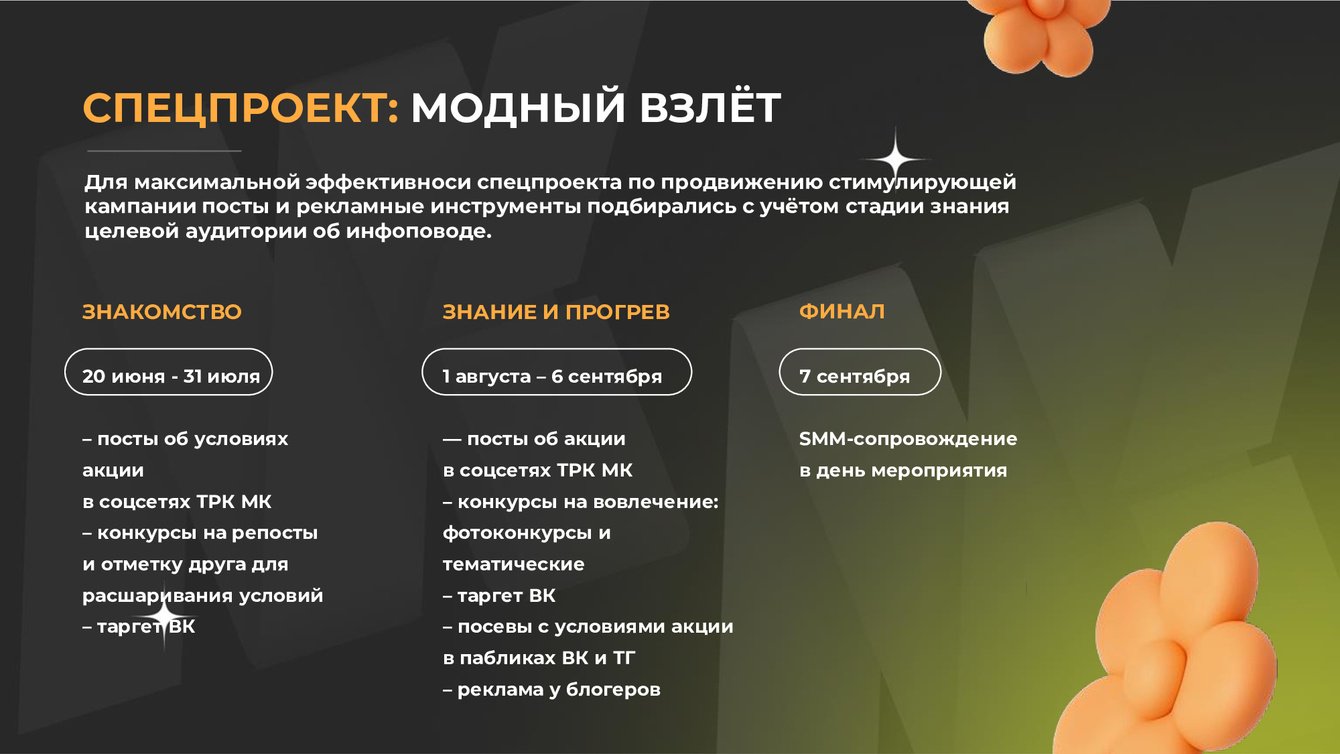 Запуск специальных рубрик и спецпроектов согласно позиционированию торгового комплекса.