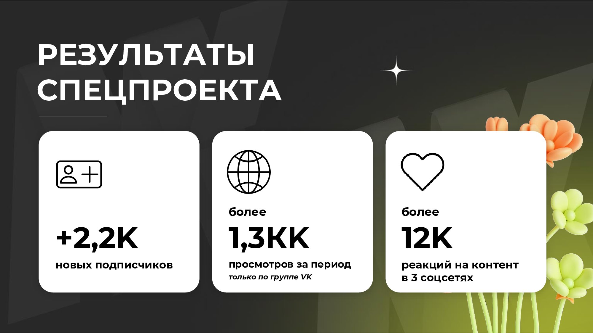 с января 2023 года. Сотрудничеством мы довольны: наблюдаем рост числа подписчиков и увеличение их вовлечённости по всем страницам проекта. Соцсети — отличный инструмент по работе с нашей целевой аудиторией.