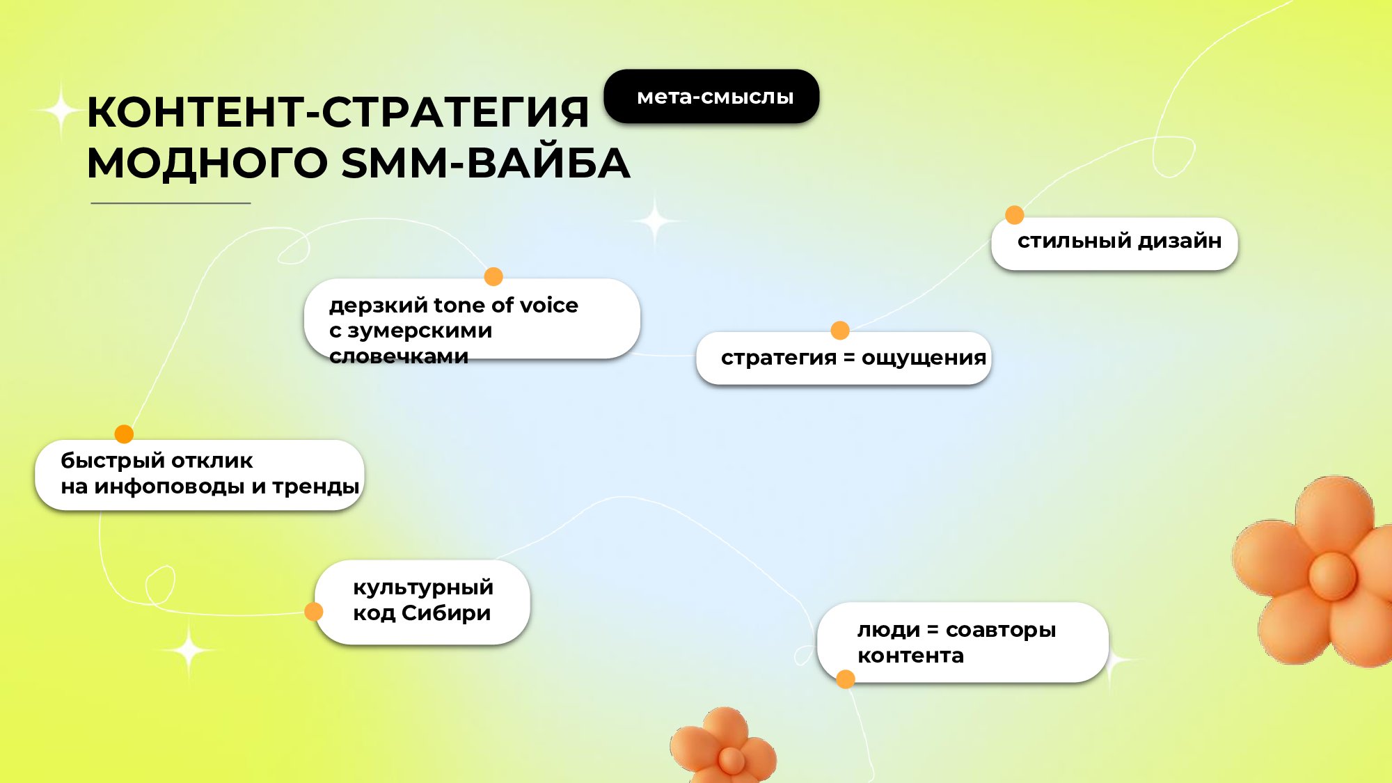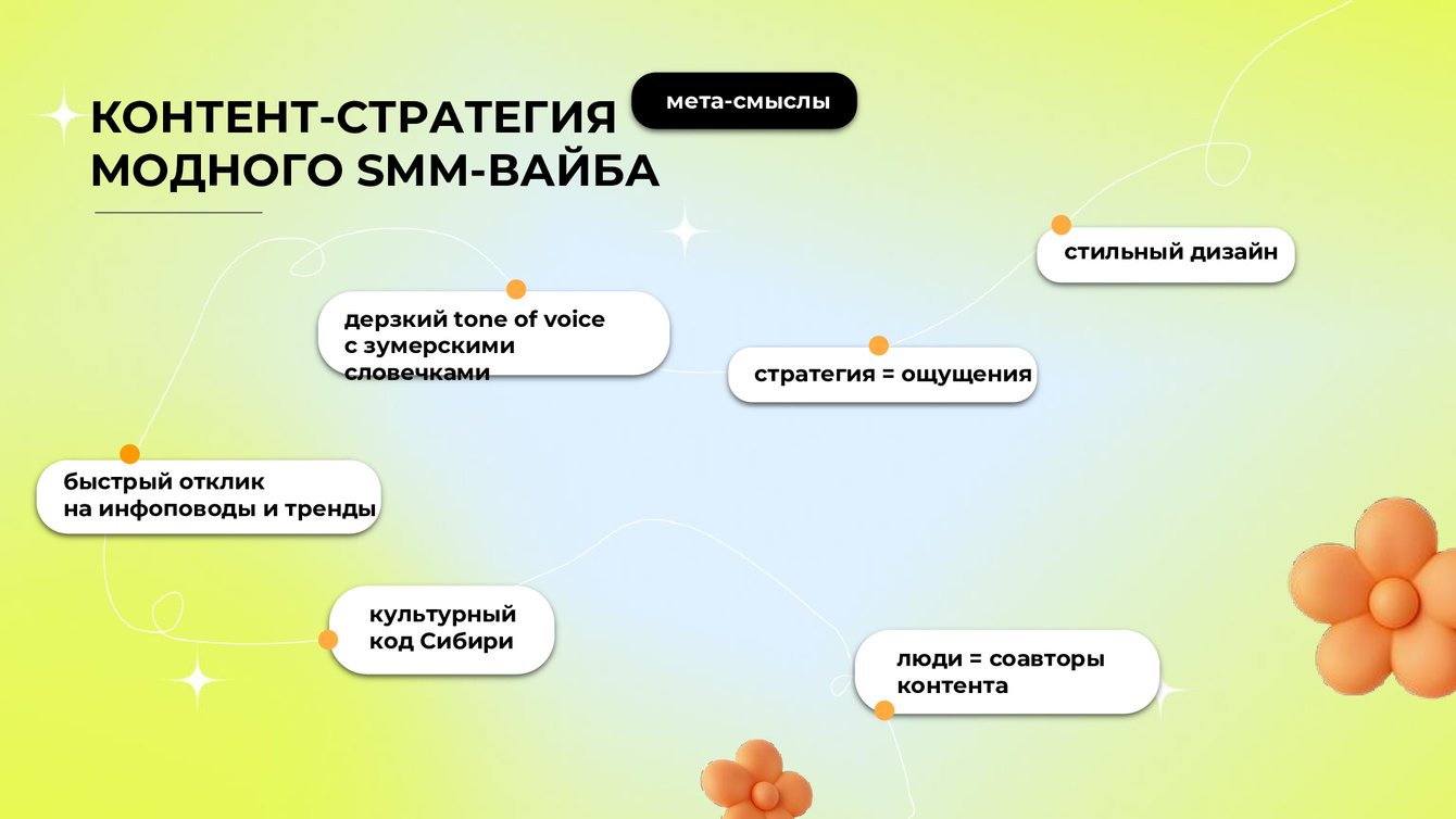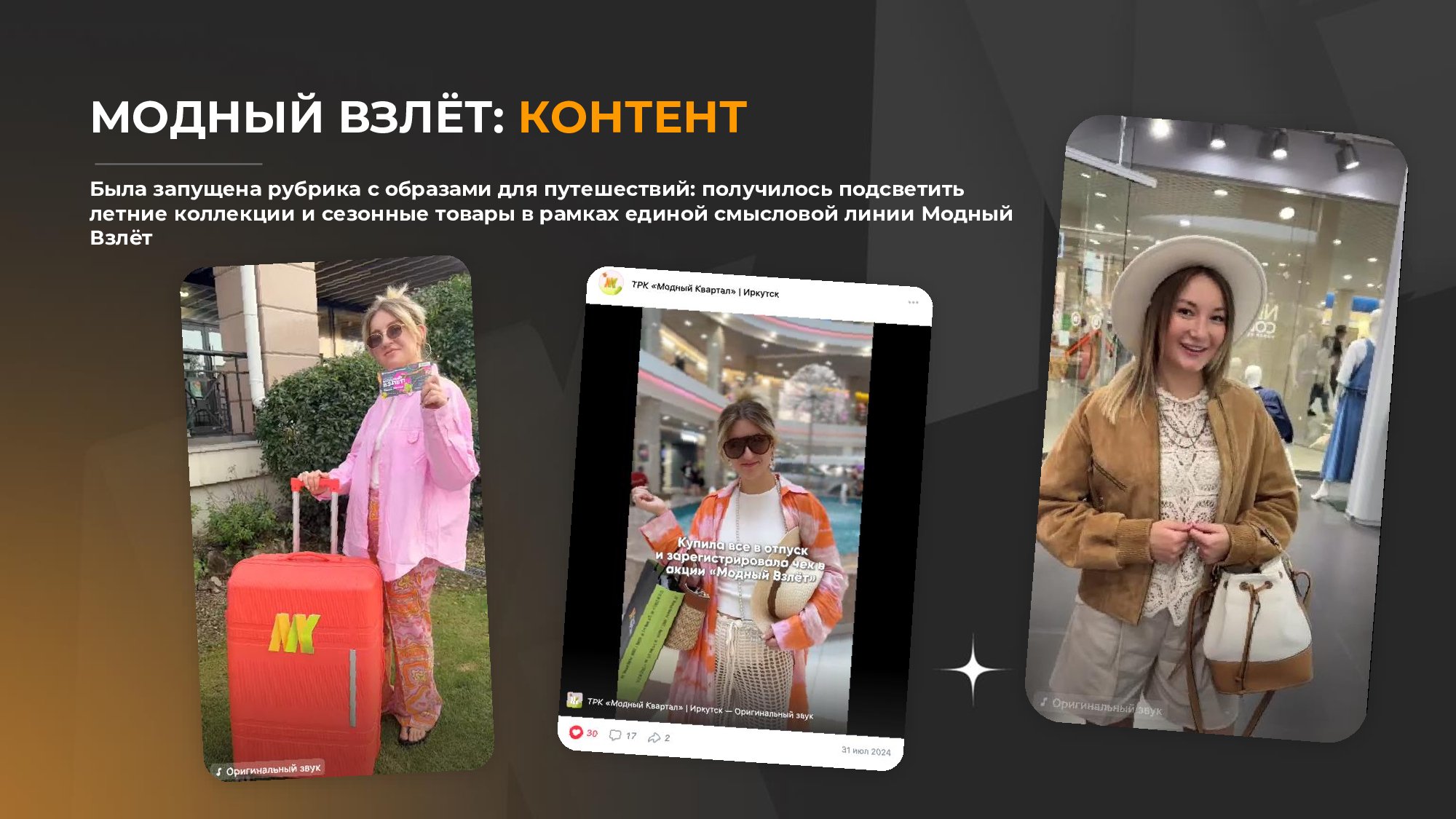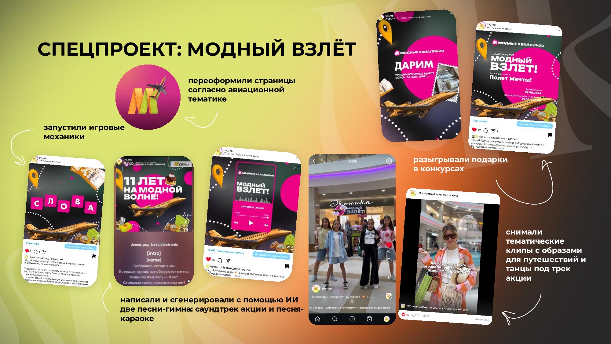 Раскрыть модный вайб торгового комплекса «Модный Квартал» через образы, рубрики, тональность текстов, выбор инфлюенсеров, трендовые мемы и горячие инфоповоды, и при этом поддерживать культурный код Сибири