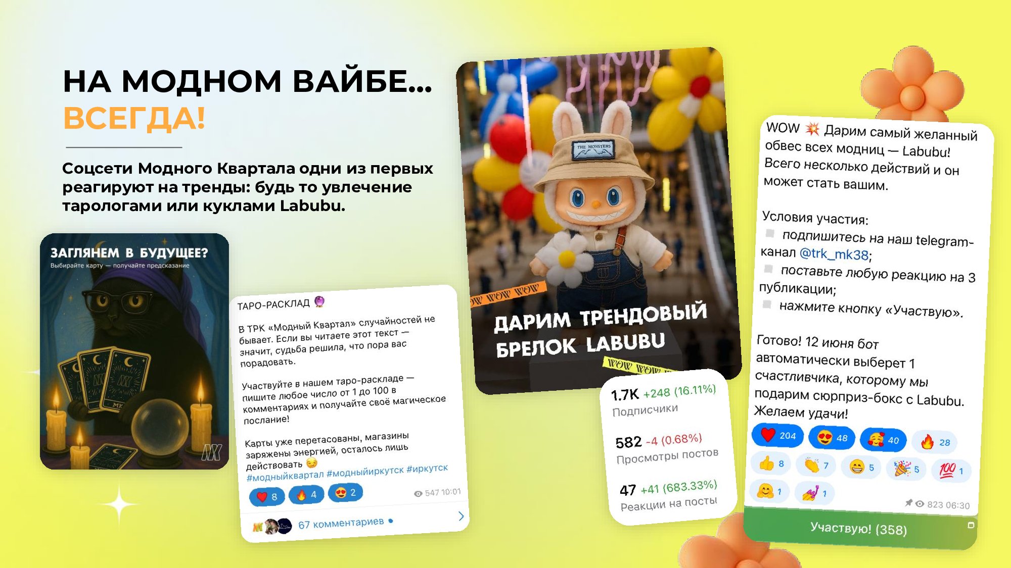По продвижению соцсетей ТРК «Модный Квартал» мы работаем с SMM-агентством