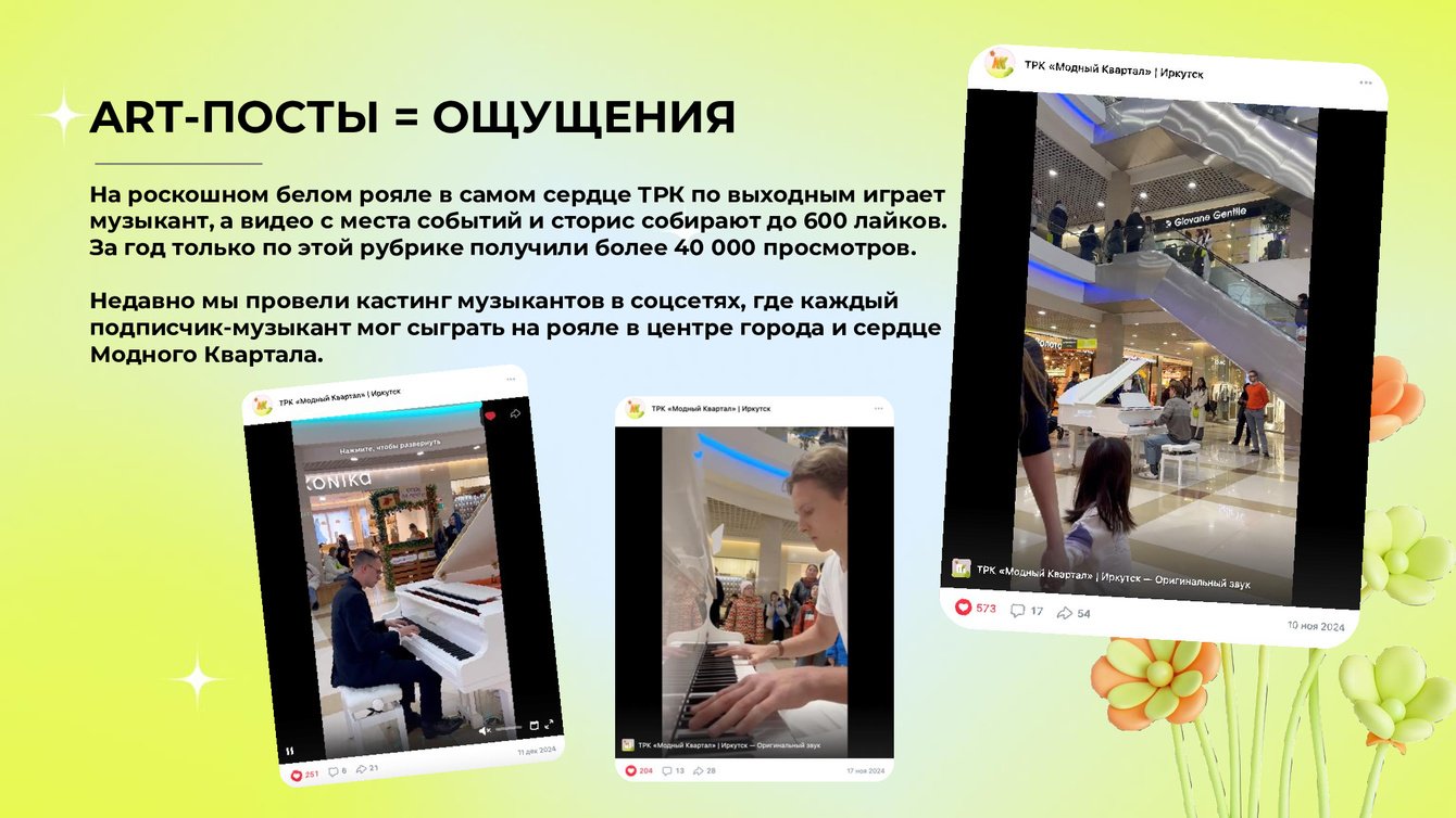 Посты с видеоконцертами пианистом формировали новую ассоциативную связь: торговый центр не только про шопинг.