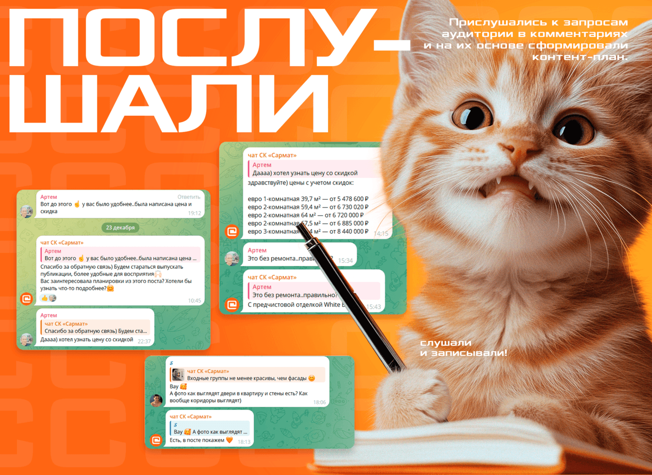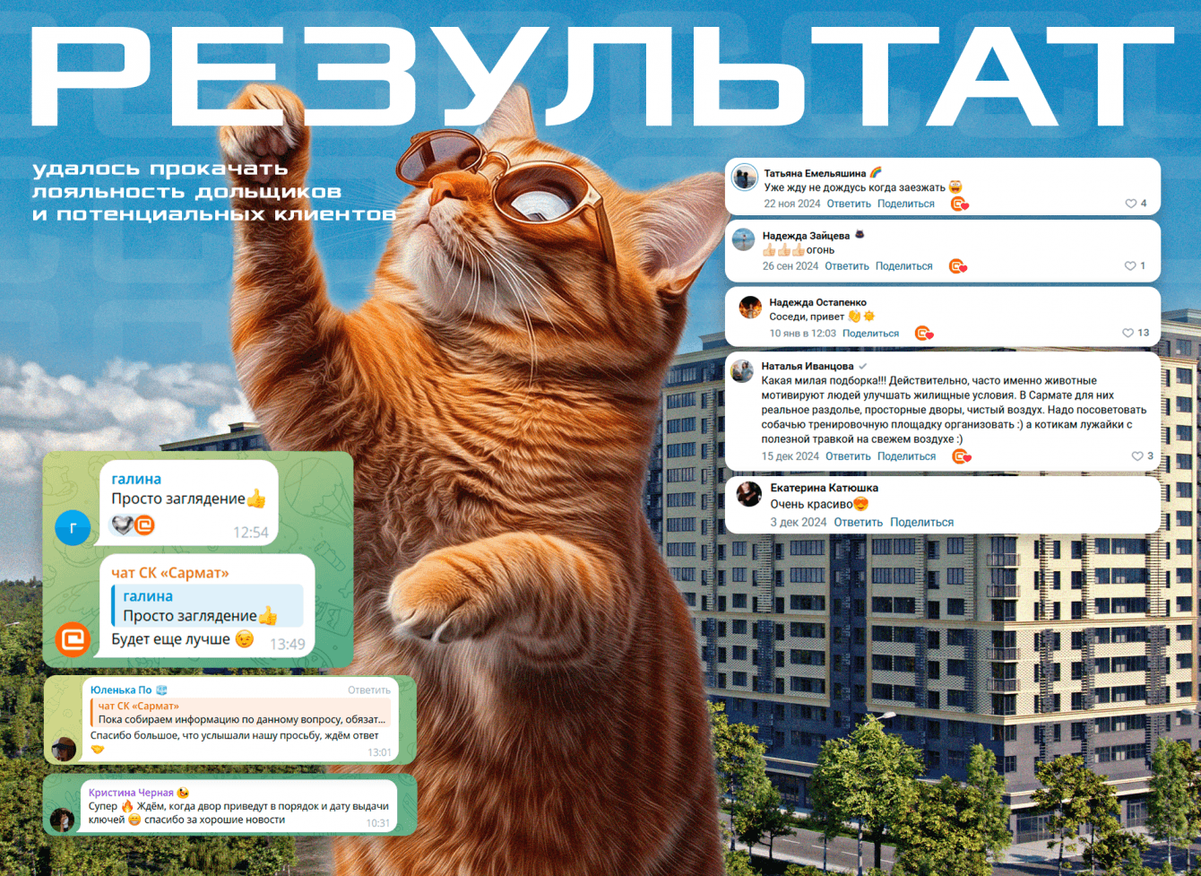 Соцсети — самый простой способ связи с компанией, особенно строительной, где каждое обращение должно быть официально составлено и задокументировано. Когда речь идет о вопросах про сдачу или благоустройство, делать этого никто, конечно, никто не будет. Поэтому поддержание связи в соцсетях — путь к завоеванию доверия аудитории.