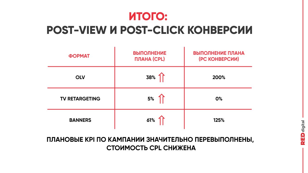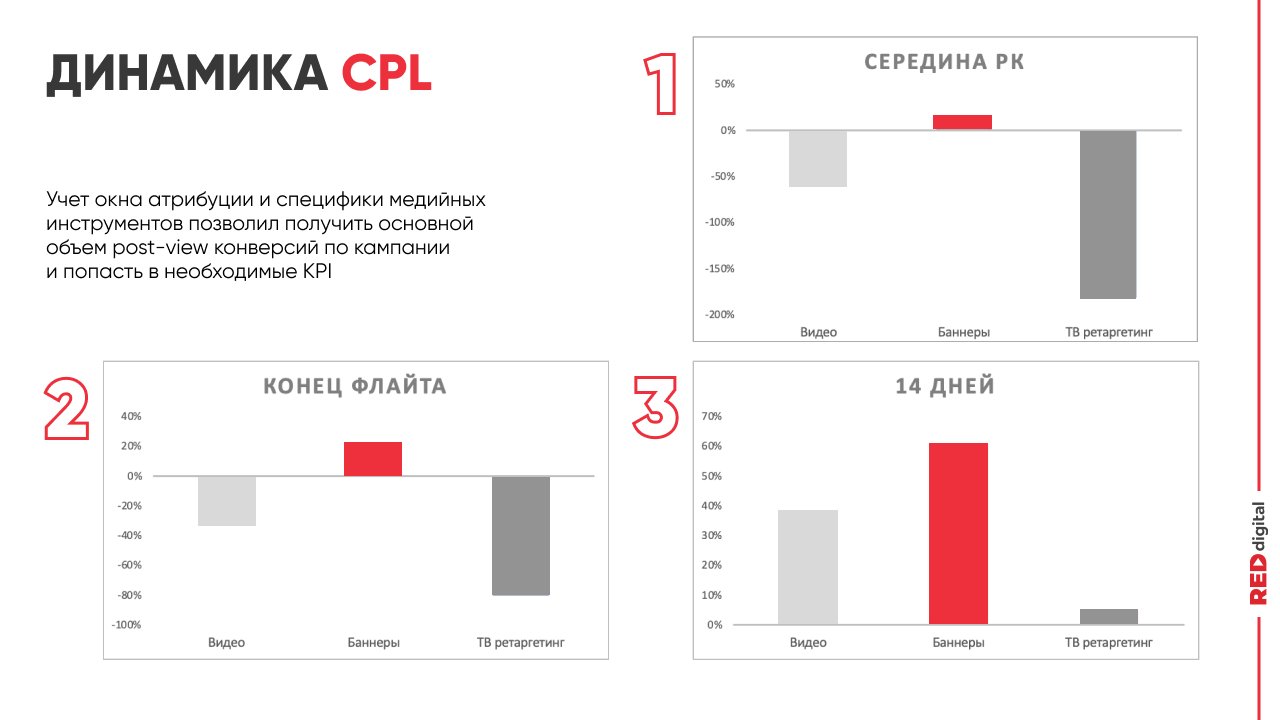 Командой агентства было предложено сделать запуск одновременно в трёх разных каналах с измерением общей динамики изменения CPL.